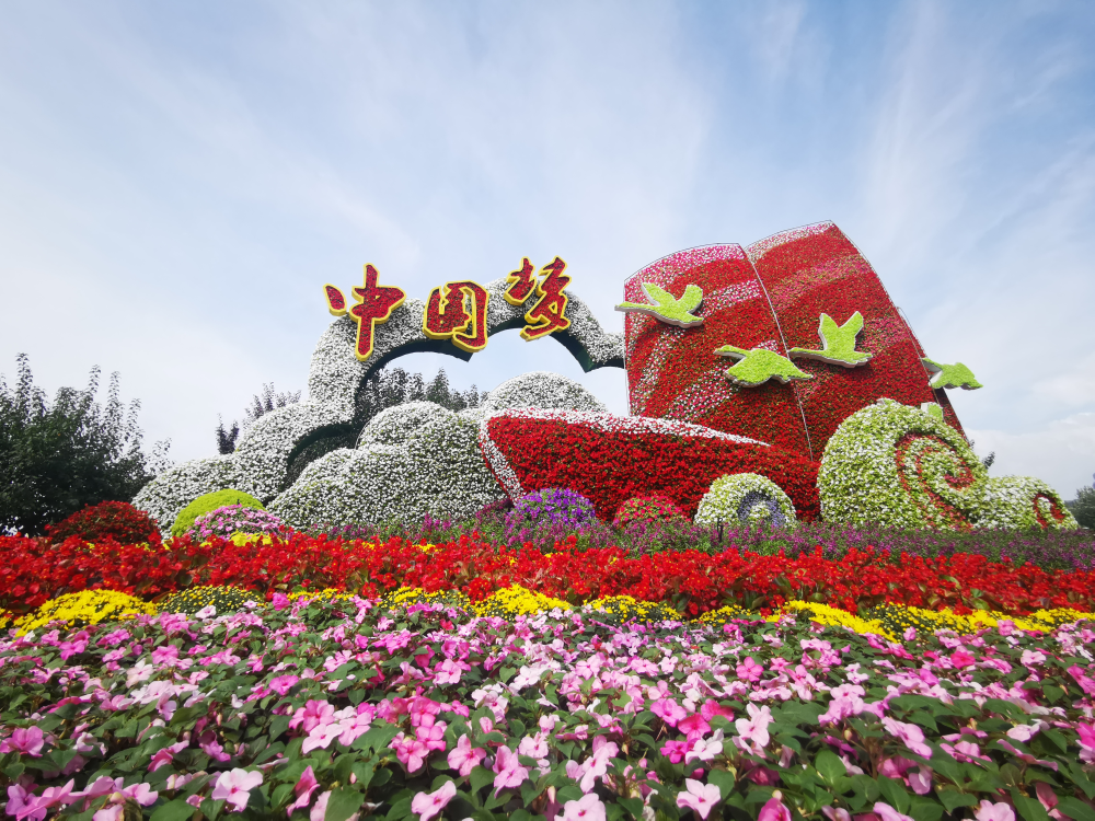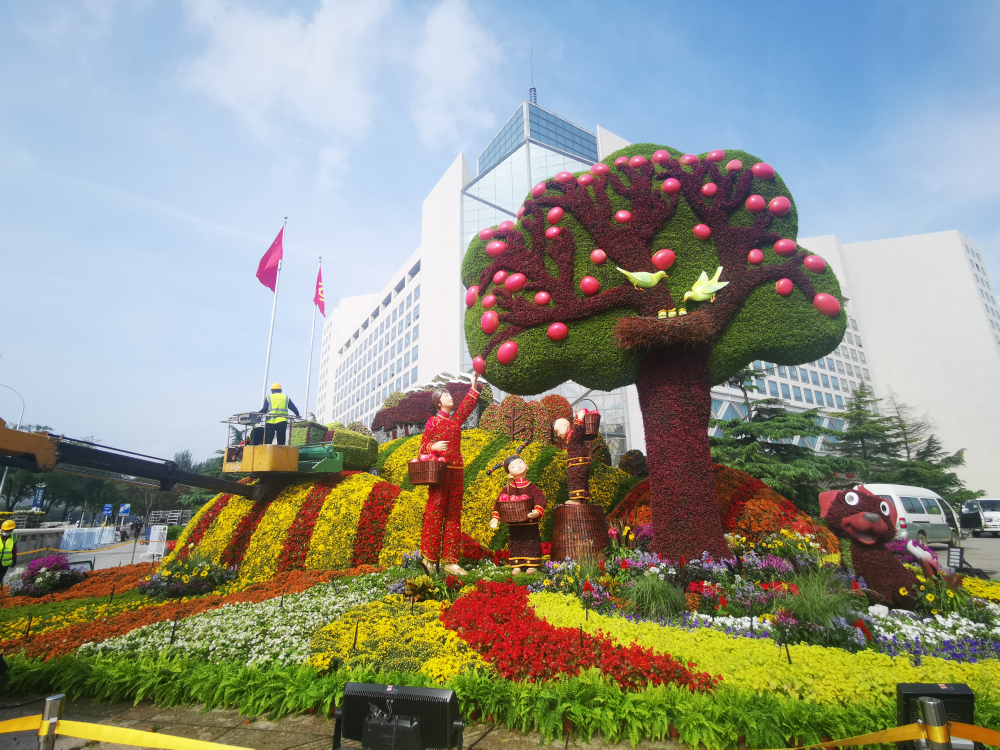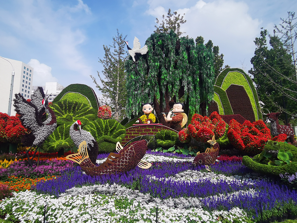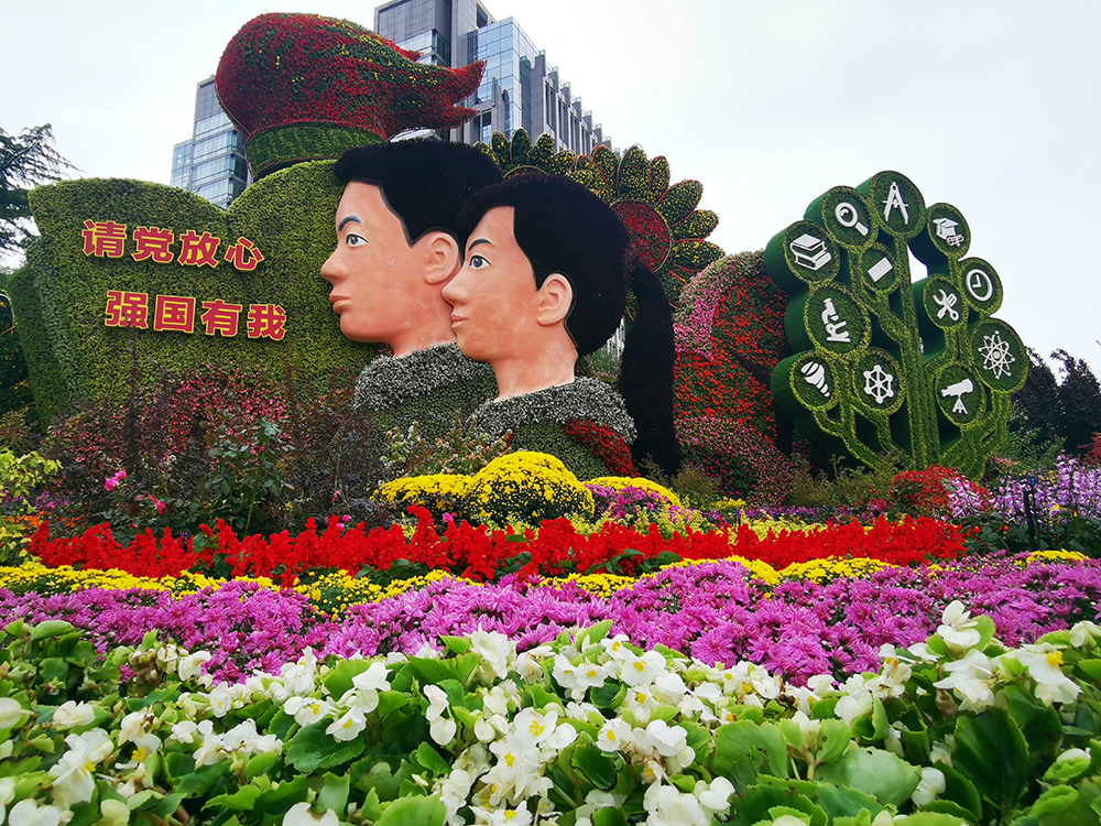 “祝福祖國”大花籃主題花壇。(攝影:申炳成)