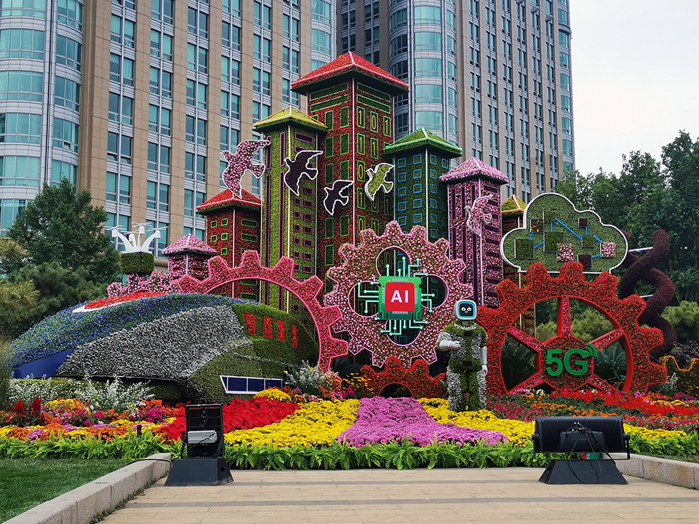 東單東南角將打造“高品質發展”主題花壇,花壇頂高9米,以蓬勃發展的社會主義現代化建設為場景(世界首套設計時速達600公里的高速磁懸浮列車、城市建設、人工智慧、5G、晶片、區塊鏈技術等),展現我國把握新發展階段,貫徹新發展理念,加快構建新發展格局,推動“十四五”時期高品質發展,確保全面建設社會主義現代化國家開好局、起好步。(攝影:楊先燦)