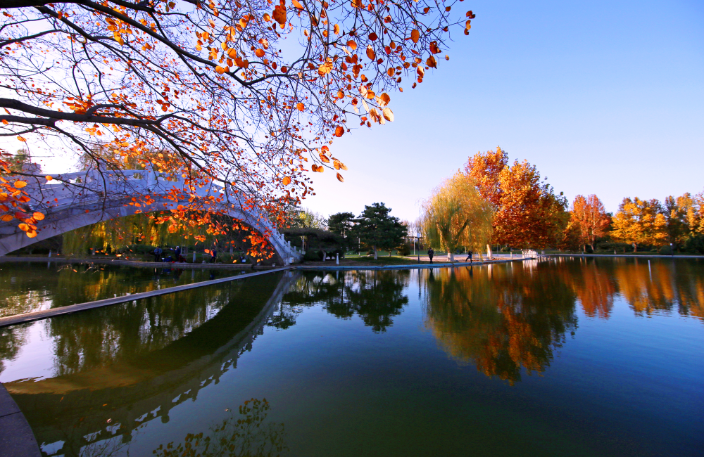 湖光橋影秋色濃