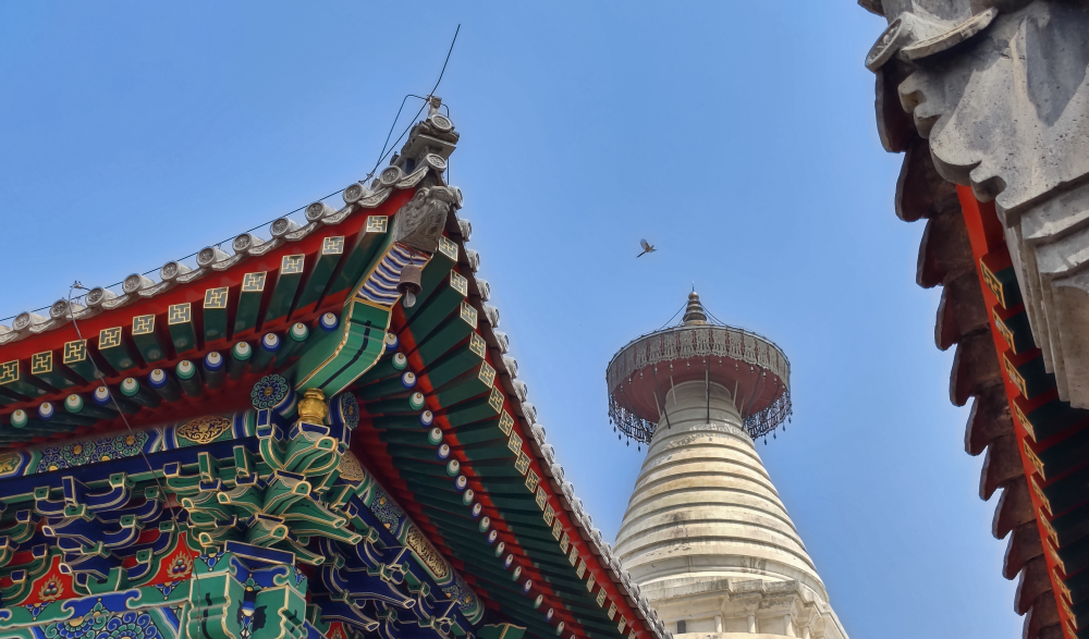 妙應寺因院內白塔又得名白塔寺。白塔是元大都城保存至今唯一完整的元代文物遺存,它既是祖國統一、民族團結的象徵,又是中尼文化源遠流長的重要標誌。(攝影:江孟中)
