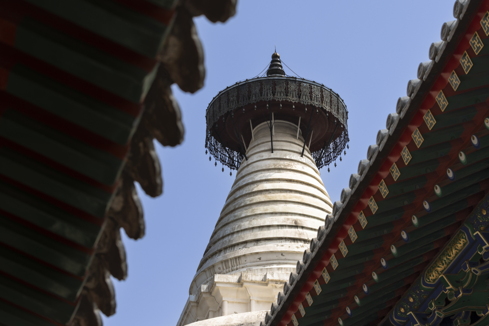 妙應寺因院內白塔又得名白塔寺。白塔是元大都城保存至今唯一完整的元代文物遺存,它既是祖國統一、民族團結的象徵,又是中尼文化源遠流長的重要標誌。(攝影:王越)