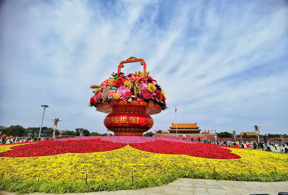 2023年9月25日,天安門廣場和長安街沿線的擺花工作完工,巨型花籃和10處主題花壇正式亮相,成為市民遊客新的打卡點,大家走上街頭欣賞花壇,共同祝福祖國。(攝影:王越)