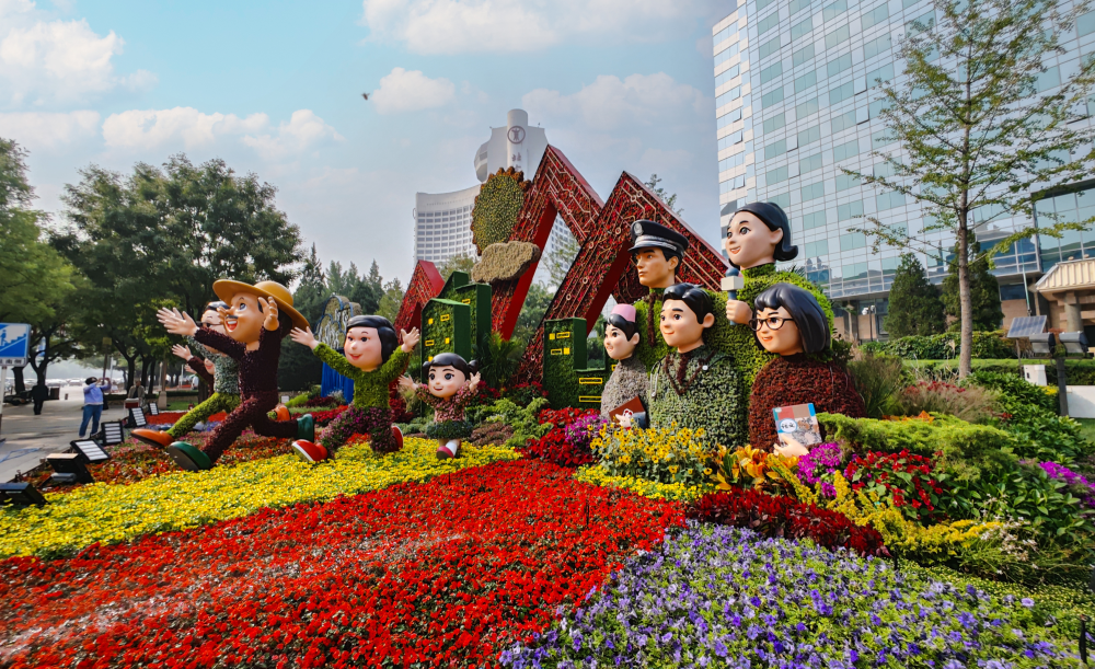 東單東南角的“共同富裕”主題花壇。(攝影:王越)