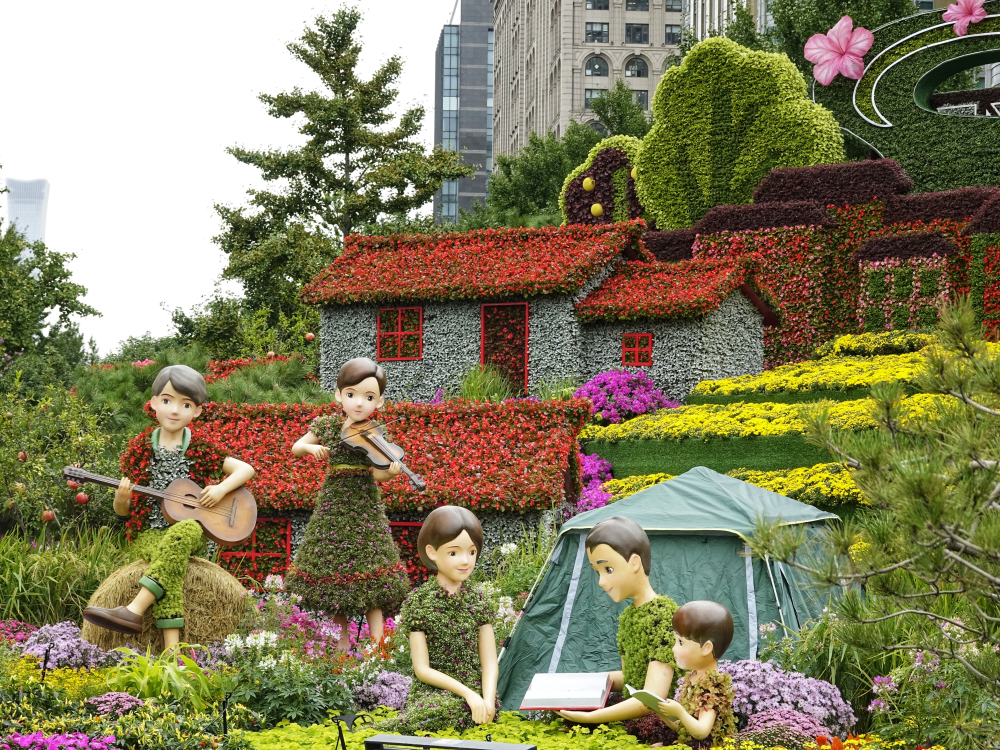 東單西北角的“和諧共生”花壇。(攝影:王越)