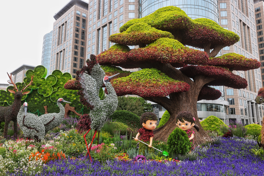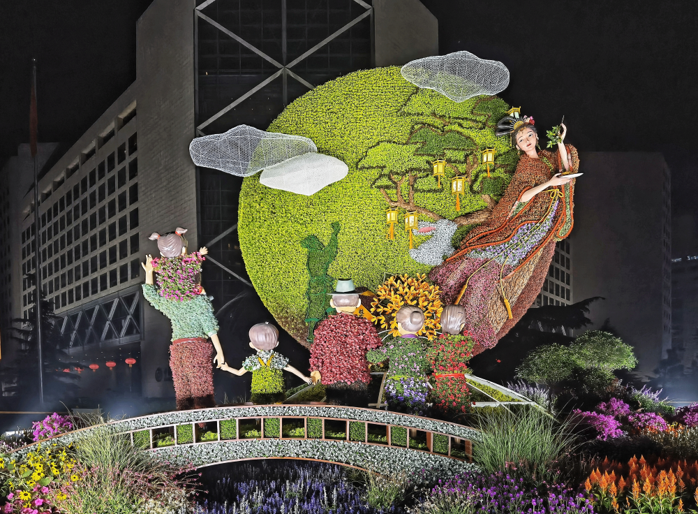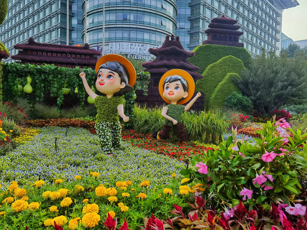 東單東北角的“文明華章”花壇。(攝影:王越)