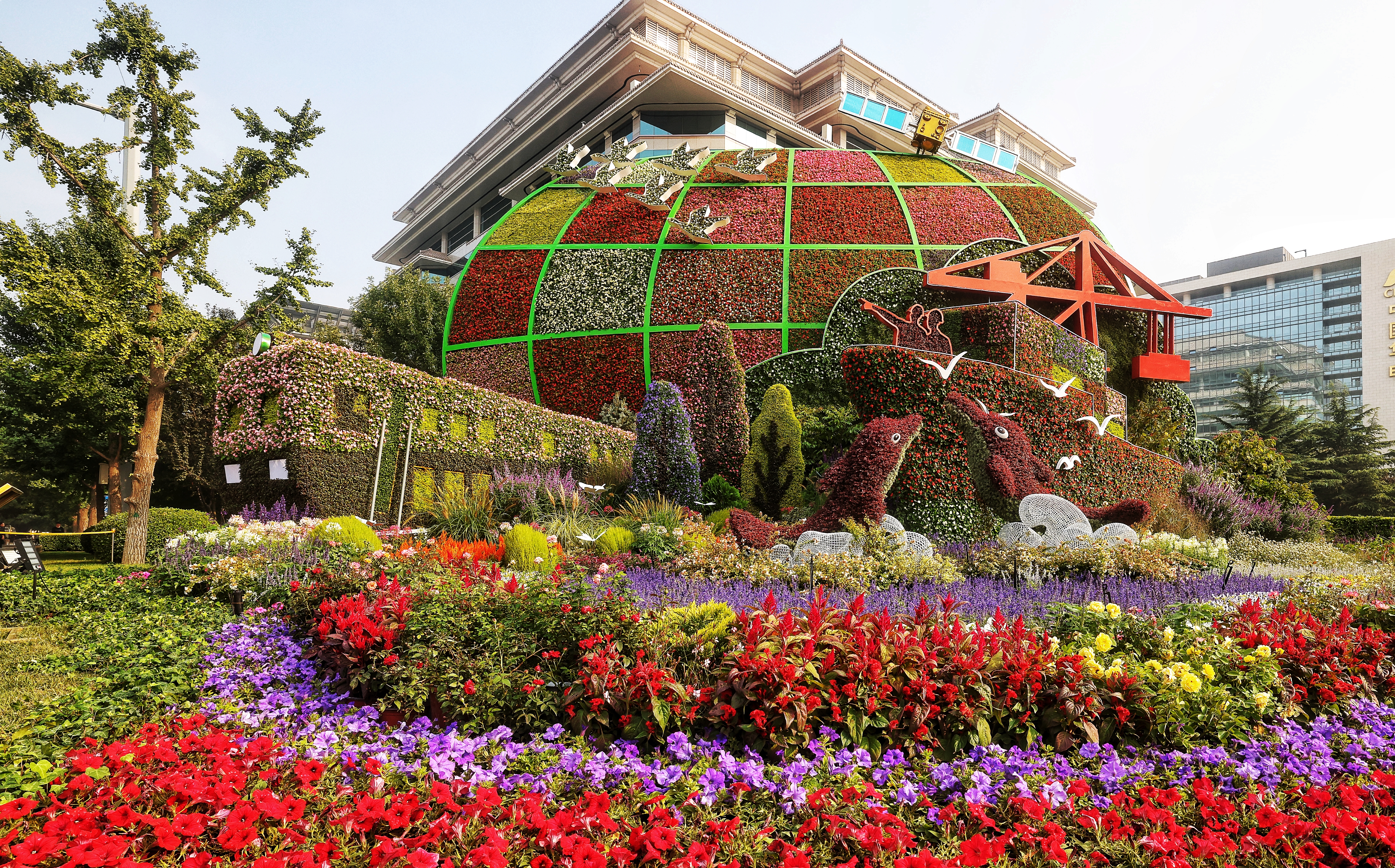 建國門西北角的“萬眾一心”花壇。(攝影:喬建)