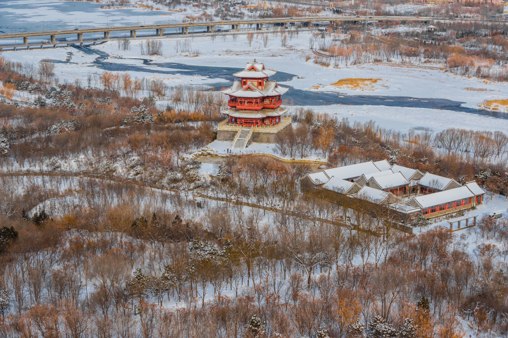皚皚白雪籠住層林、覆蓋泉面,將北京園博園裝點,成宛若晶瑩剔透的童話世界。