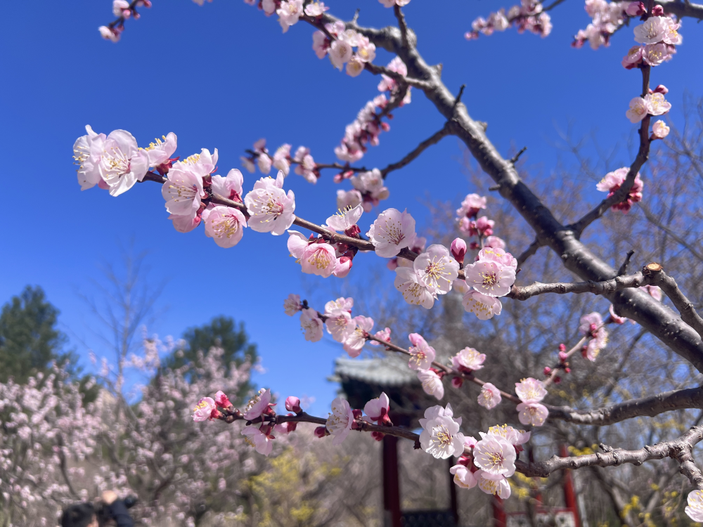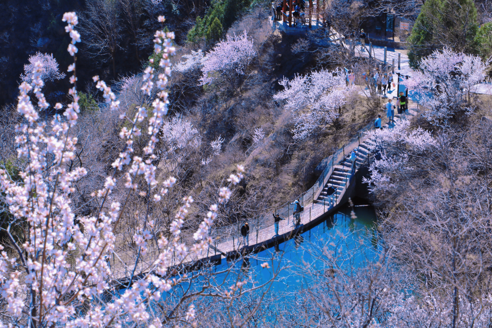 春意盎然,乍暖還寒。北京鳳凰嶺自然風景區百花盛放。
