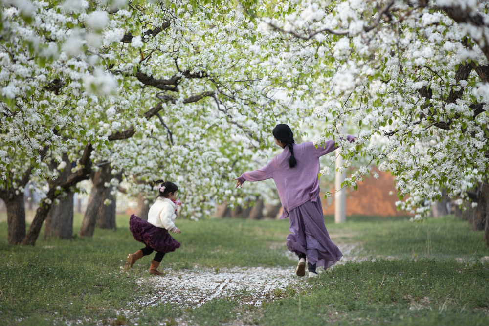 春天的大興生機盎然。梨花如雪,密密匝匝,風一吹,群鳥飛起,麋鹿出沒;陸續有西瓜熟了,葡萄上果,月季爭妍鬥艷,湖水清波瀲艷。宜居宜業美大興,如詩如畫好家園。(攝影:段旭升)