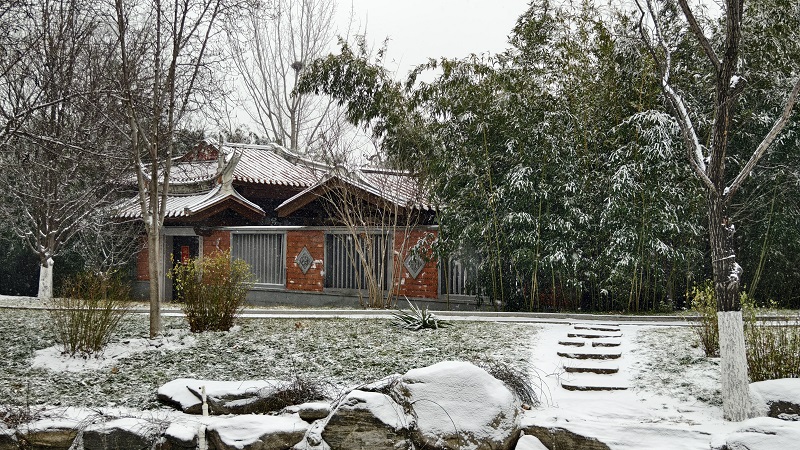 雪後的園博園宛如一幅淡雅的水墨畫,在天地間徐徐展開。(攝影:覃世明)
