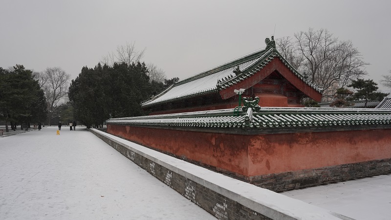 走進雪後的地壇,熱門打卡點“地壇的海”此刻仿佛化身成了一片靜謐的雪海。(攝影:李奕)