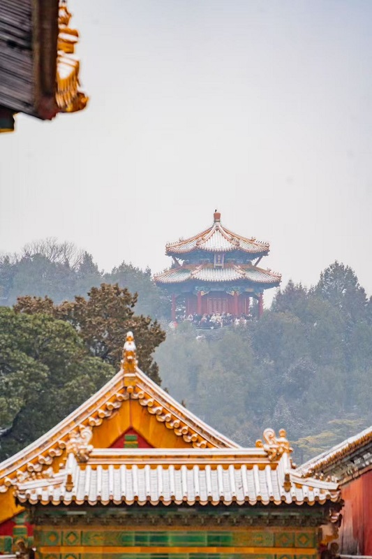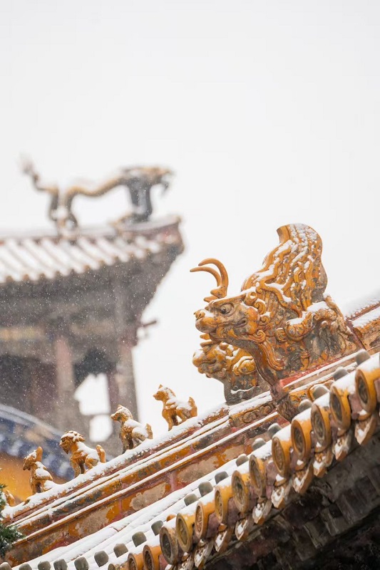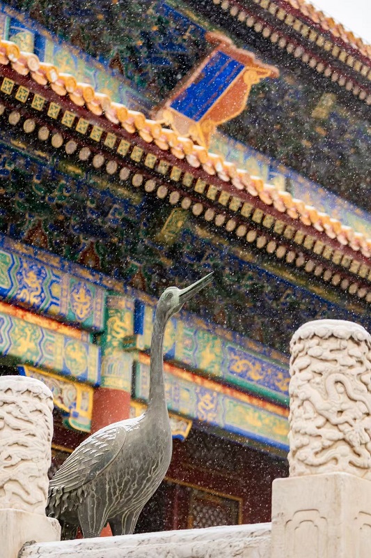 雪後的故宮,褪去喧囂,以素白之姿靜立天地之間。紅墻金瓦覆雪如蓋,飛檐鬥拱凝霜似玉,六百年的皇家氣象在冰雪中愈發莊重深沉。當鏡頭定格,記錄的不僅是雪景之美,還是故宮的冬日美學。(攝影:沈欣)