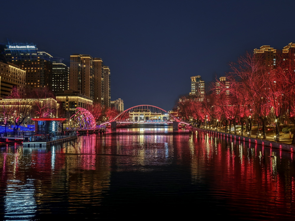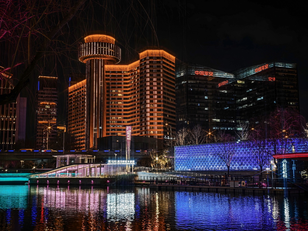 冬夜的風裹着涼意掠過亮馬河,卻吹不滅滿河的璀璨。岸邊的燈帶似凝固的星河,沿着河道蜿蜒舒展,暖黃與銀白交織着,把周邊建築的輪廓暈成朦朧的剪影。偶爾有行人裹緊圍巾駐足,手機鏡頭對準河面,想留住這冬夜獨有的光影。