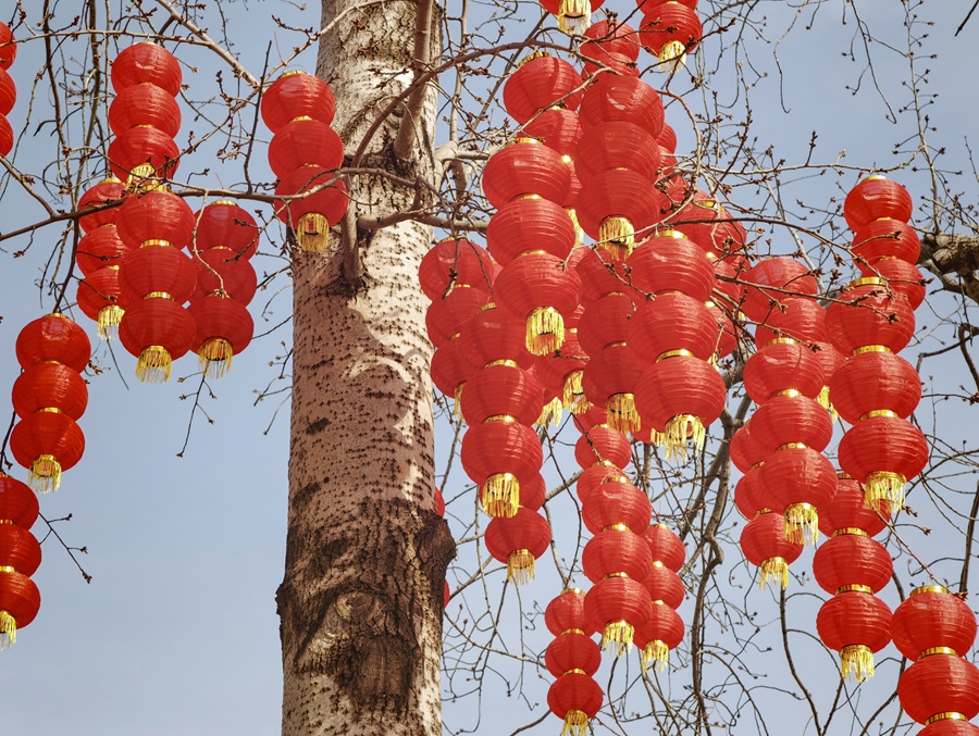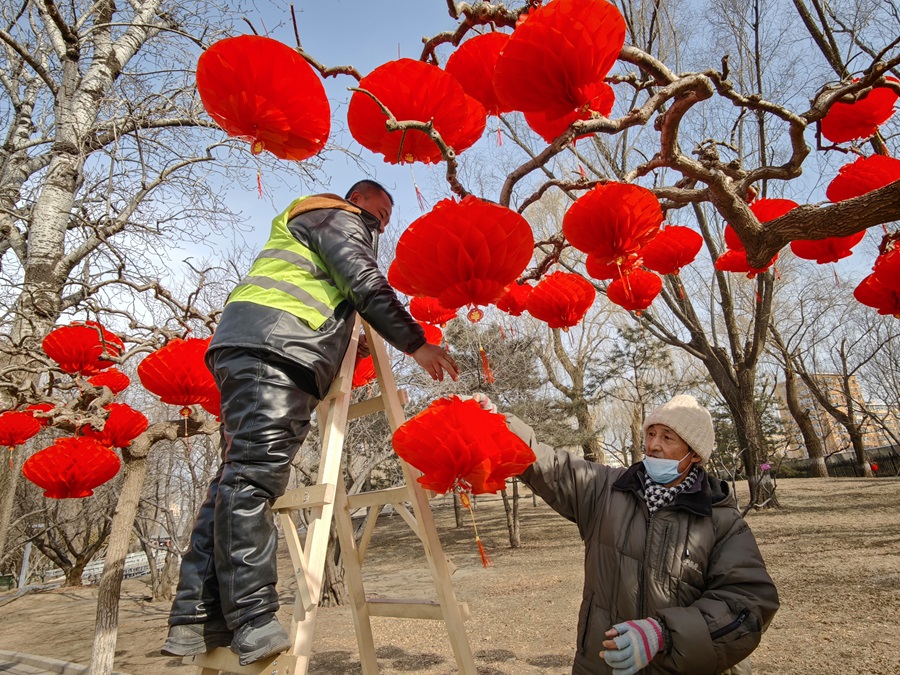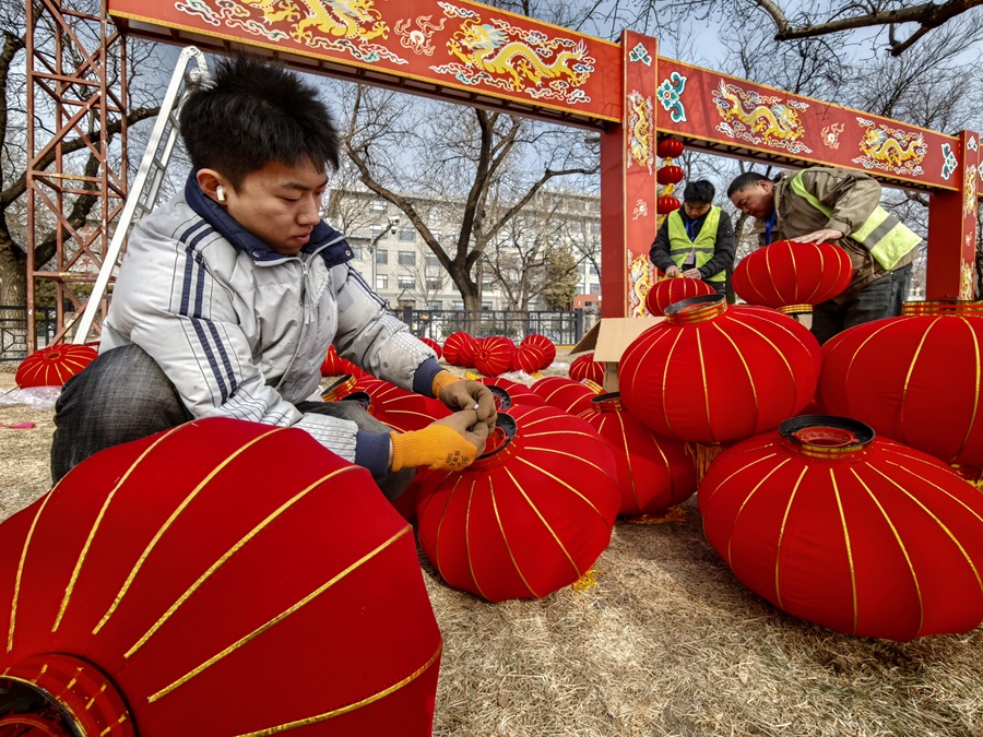 新春將至,龍潭湖公園內張燈結綵,工人們正緊鑼密鼓推進第四十屆龍潭春節文化廟會布展工作,紅燈籠、特色美陳次第亮相,濃濃年味撲面而來。本屆廟會以“京韻年·煙火集”為主題,將於2月17日至23日(正月初一至初七)迎客。