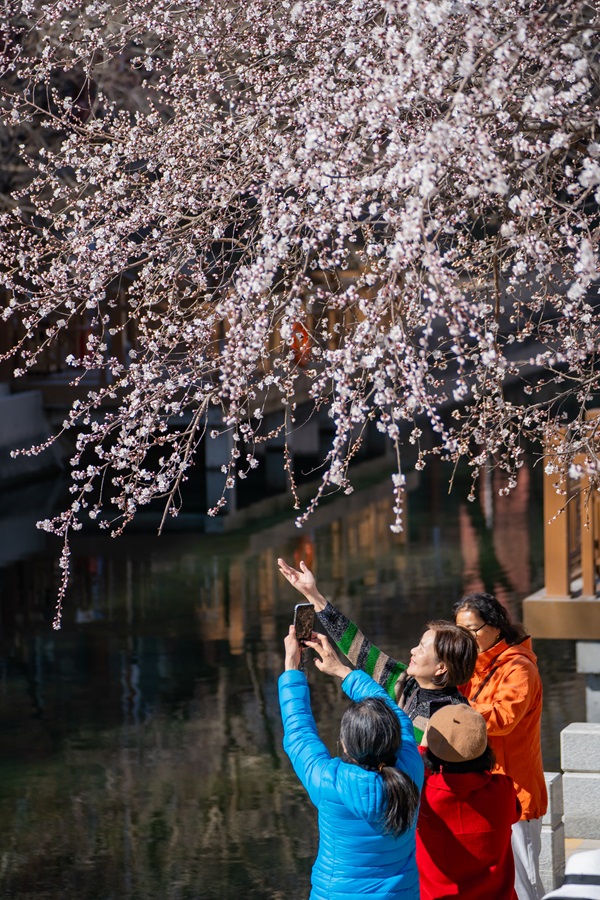 如果説明城墻的梅花,是北京春天的序章,那麼十里堡的山桃花,就像是春天正式拉開帷幕的那一刻。“十里堡水映桃花”是北京春日熱門打卡點之一。這裡的山桃花林面積較大,遍佈整條河道南北兩岸。春風拂過,遊人穿梭花影間,或駐足拍照,或輕嗅芬芳,將這爛漫春光定格成最美的詩箋。