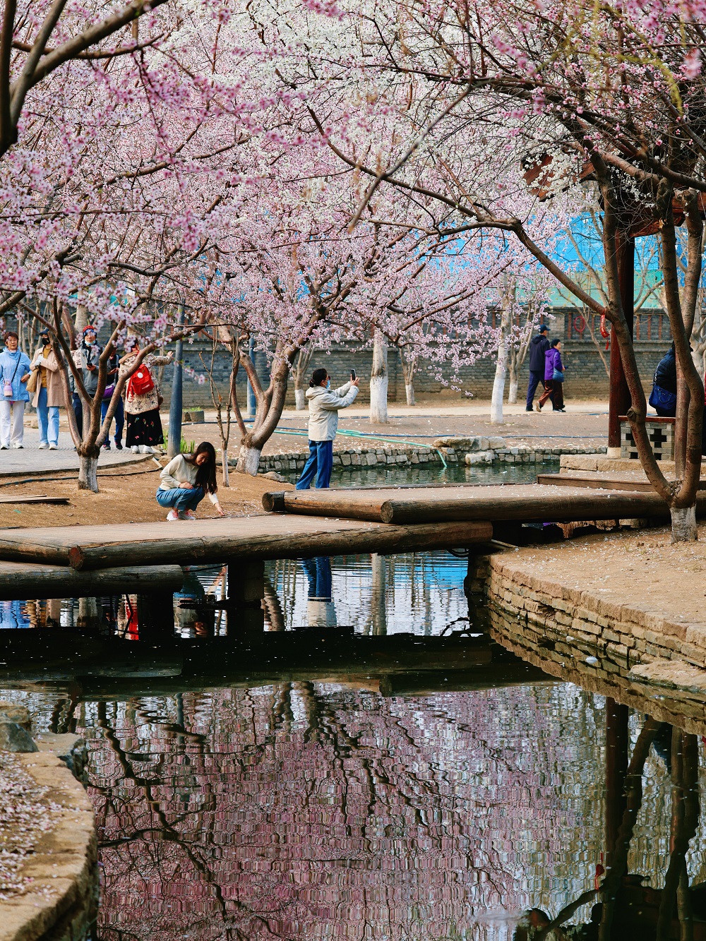 三里河公園位於北京市東城區前門地區,以其“水穿街巷”的景觀和融合歷史文脈與生態功能而著稱,成為了衚同裏的“小江南”。現在的三里河,是屬於桃花的季節,花溪流水,魚鴨自得,隨手一拍都是溫婉意境。