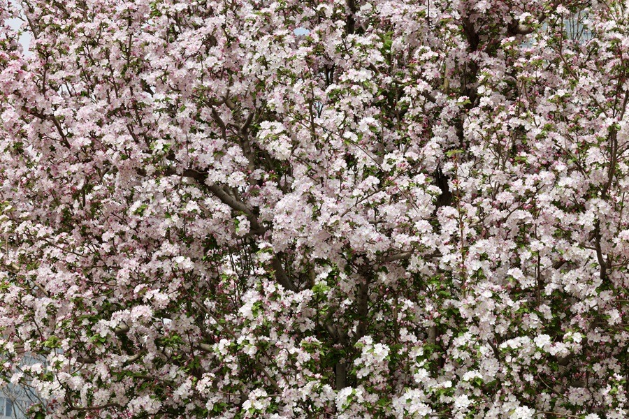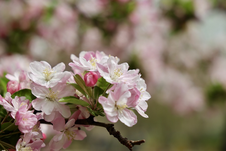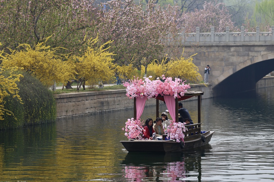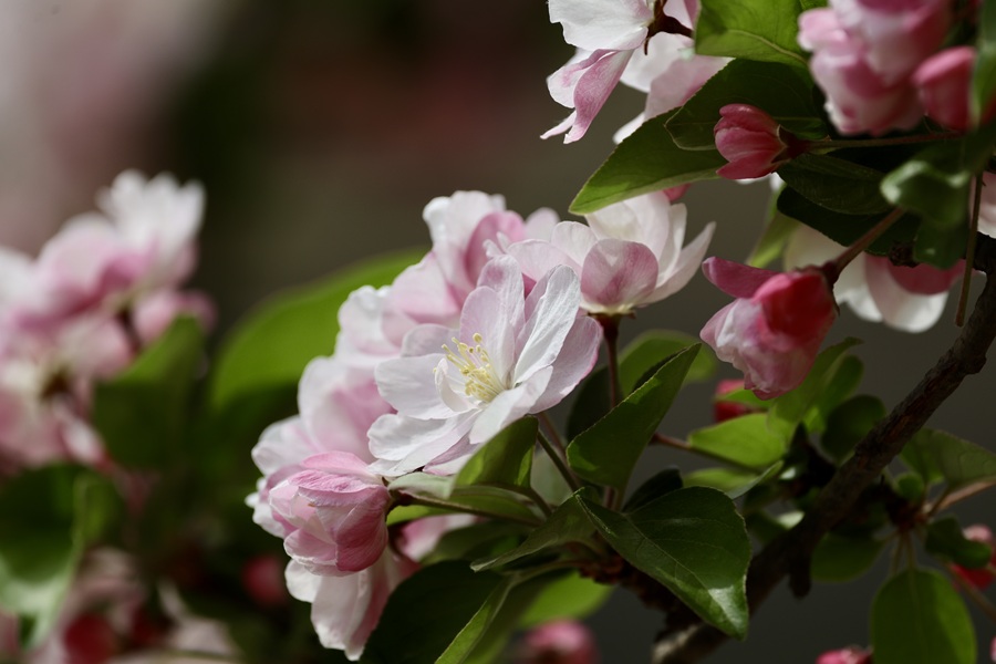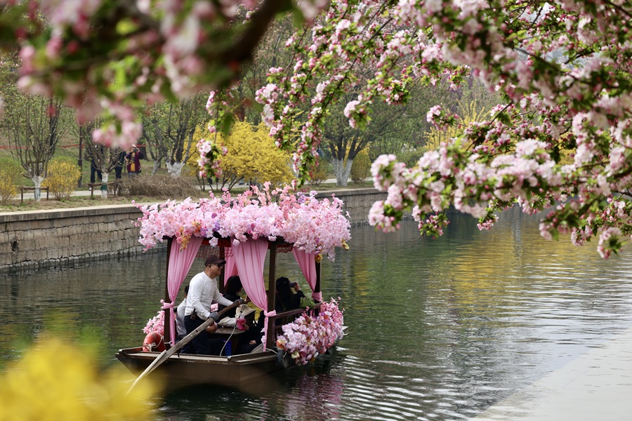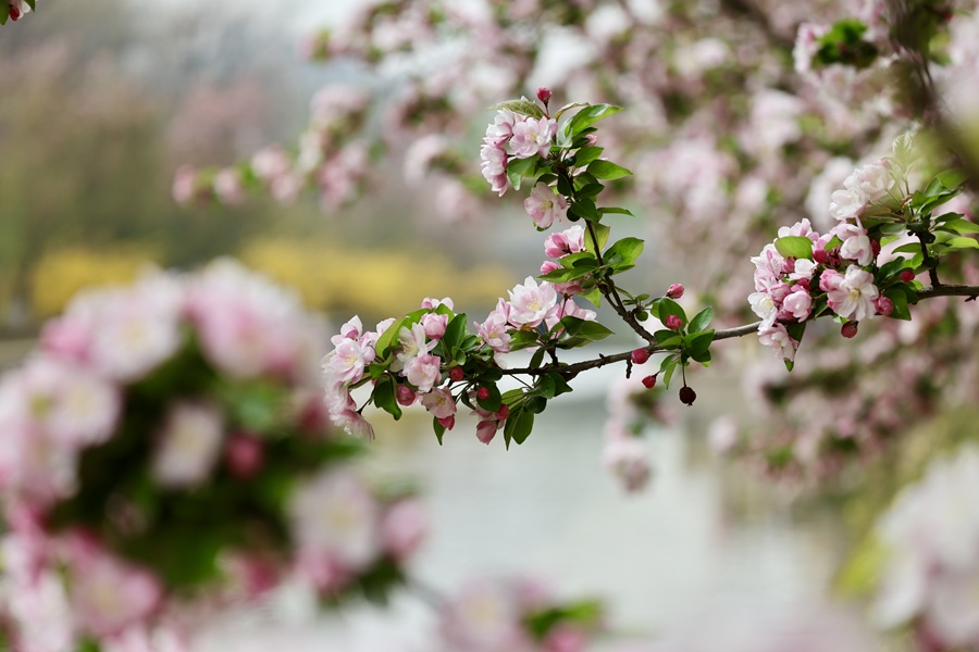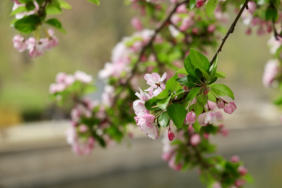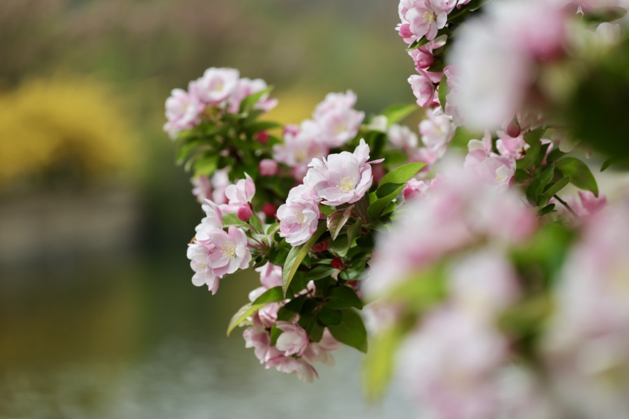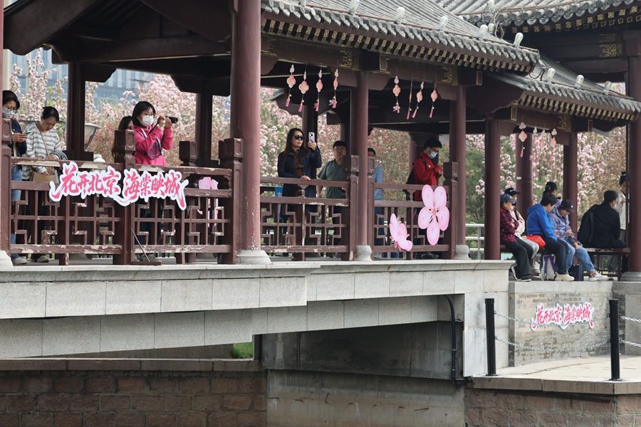 四月,元大都城垣公園的海棠花盛放,正式進入觀賞期。微風拂過,粉的白的花瓣隨風落入水面,隨河水靜靜流淌,形成名動京城的“海棠花溪”景觀。