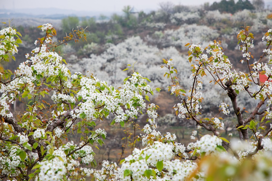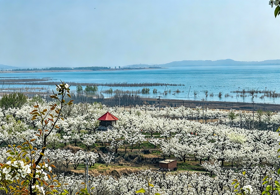 近日,位於密雲水庫北岸的不老屯鎮花“海”綻放,萬畝梨花與密雲水庫蔚藍水面相映成趣。不老屯鎮擁有近萬畝梨園,主要分佈在燕落、黃土坎、轉山子等村,每年4月中下旬,梨花競相綻放,萬畝梨園進入最佳觀賞期,花期持續約15天,呈現出“梨花如雪”的壯觀景象。