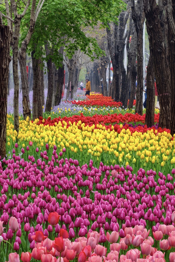 春光織錦。層層疊疊的鬱金香鋪成絢爛花毯。(攝影:崔慧蘭)