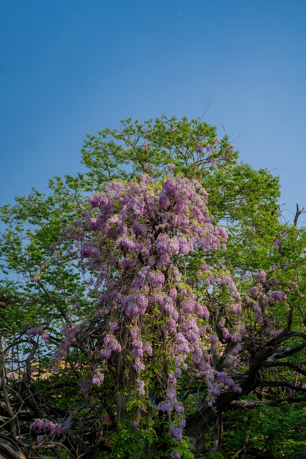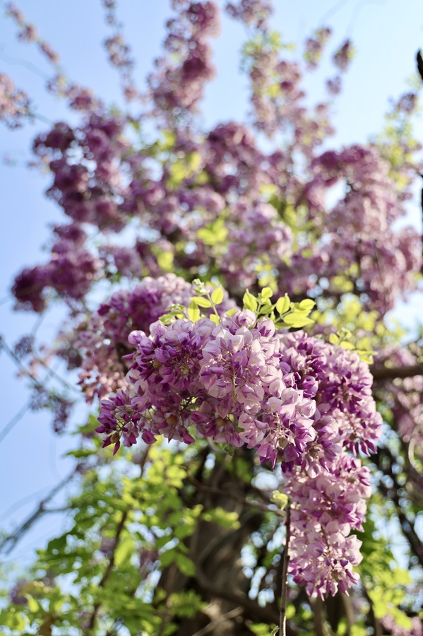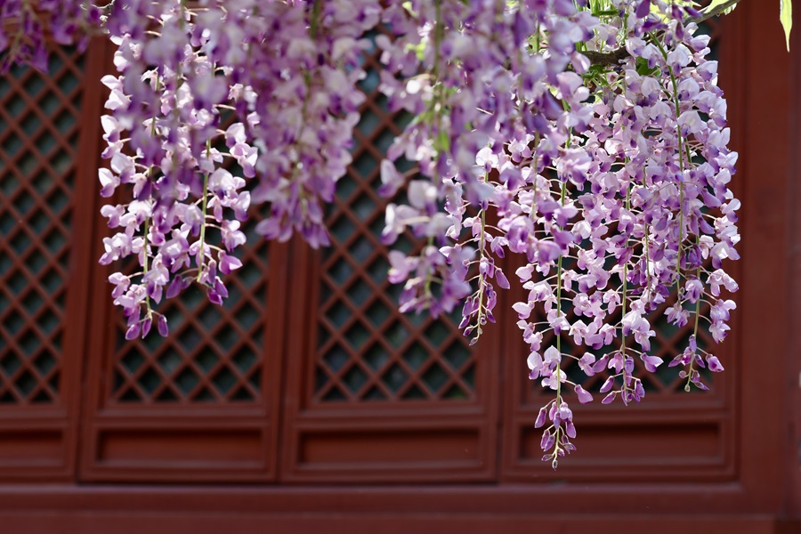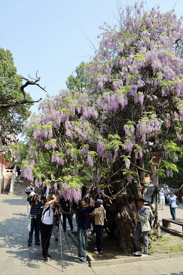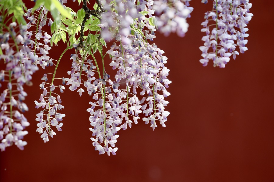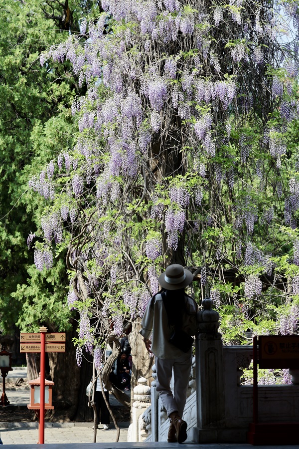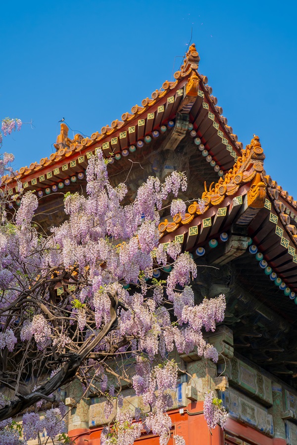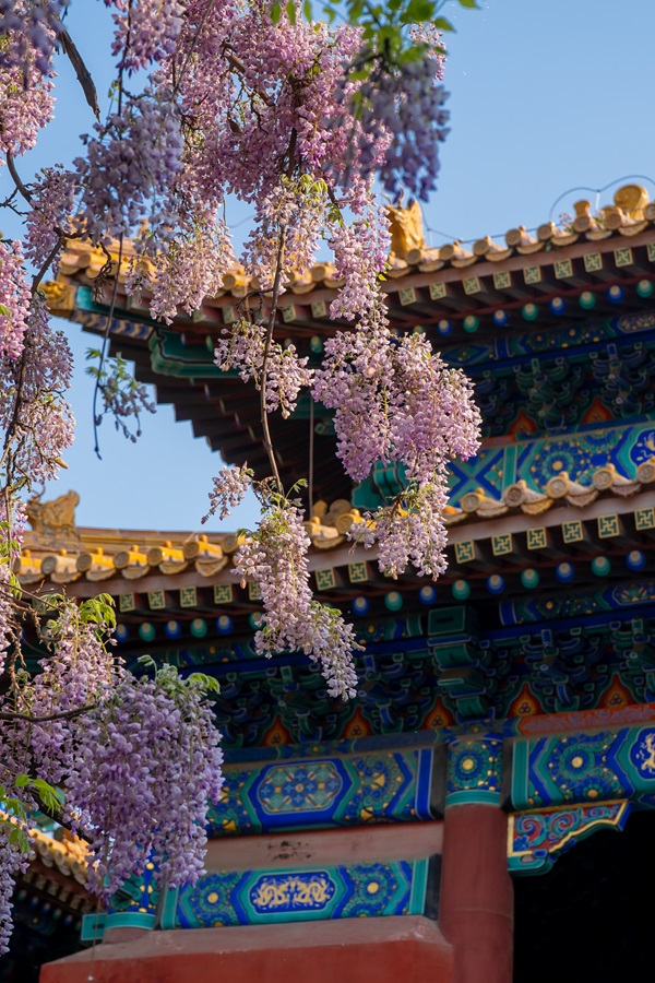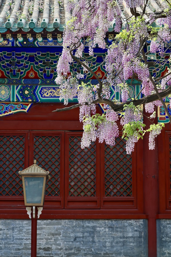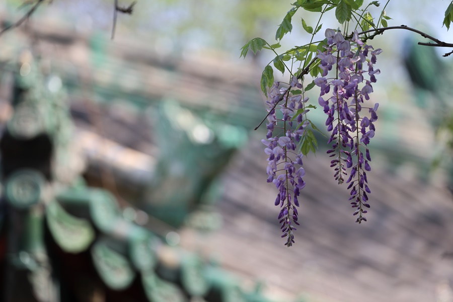 紫藤季已到!近日,北京孔廟和國子監博物館院內的十余株紫藤已陸續開放。琳瑯光影,紫藤繞梁,在這京城春日,不妨共賞古意與芬芳交織的紫藤花事。(攝影:沈欣)
