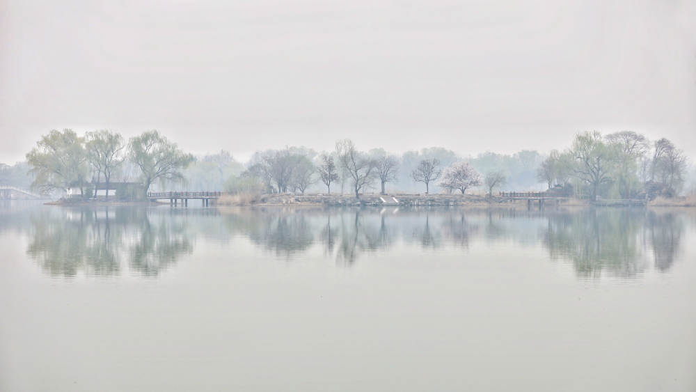 雨後的圓明園籠罩在一片煙雨中,和盛開的春花一起,北京仿佛變成了揚州。