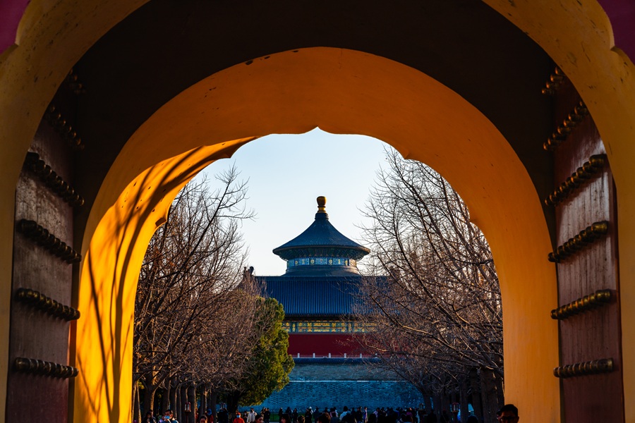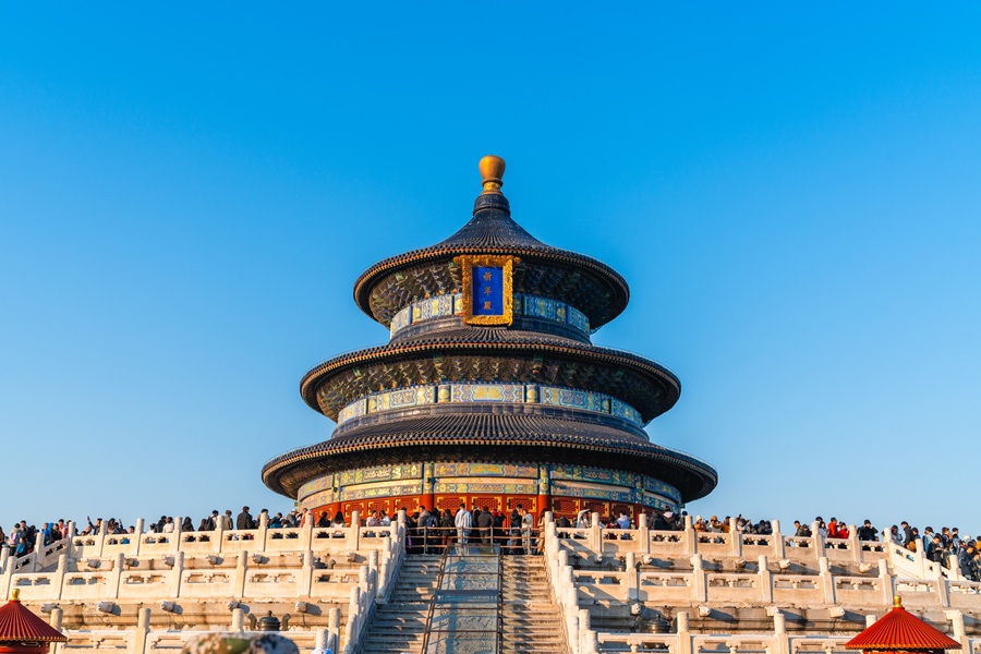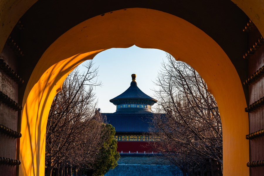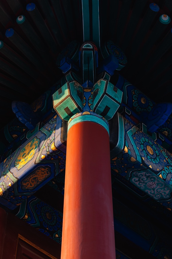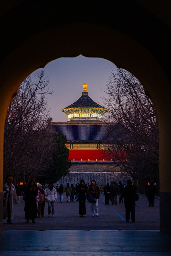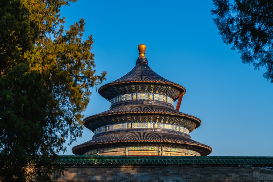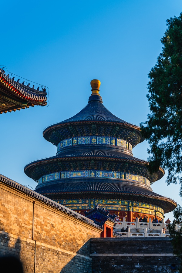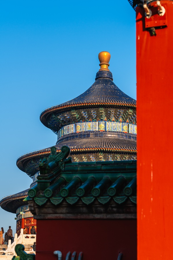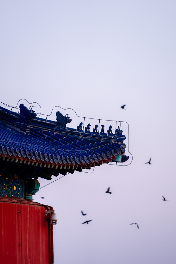 踏入天壇,倣若穿越時空。祈年殿藍瓦紅柱,檐角如飛鳥展翅欲衝霄漢,在光影中訴説古老祈願。