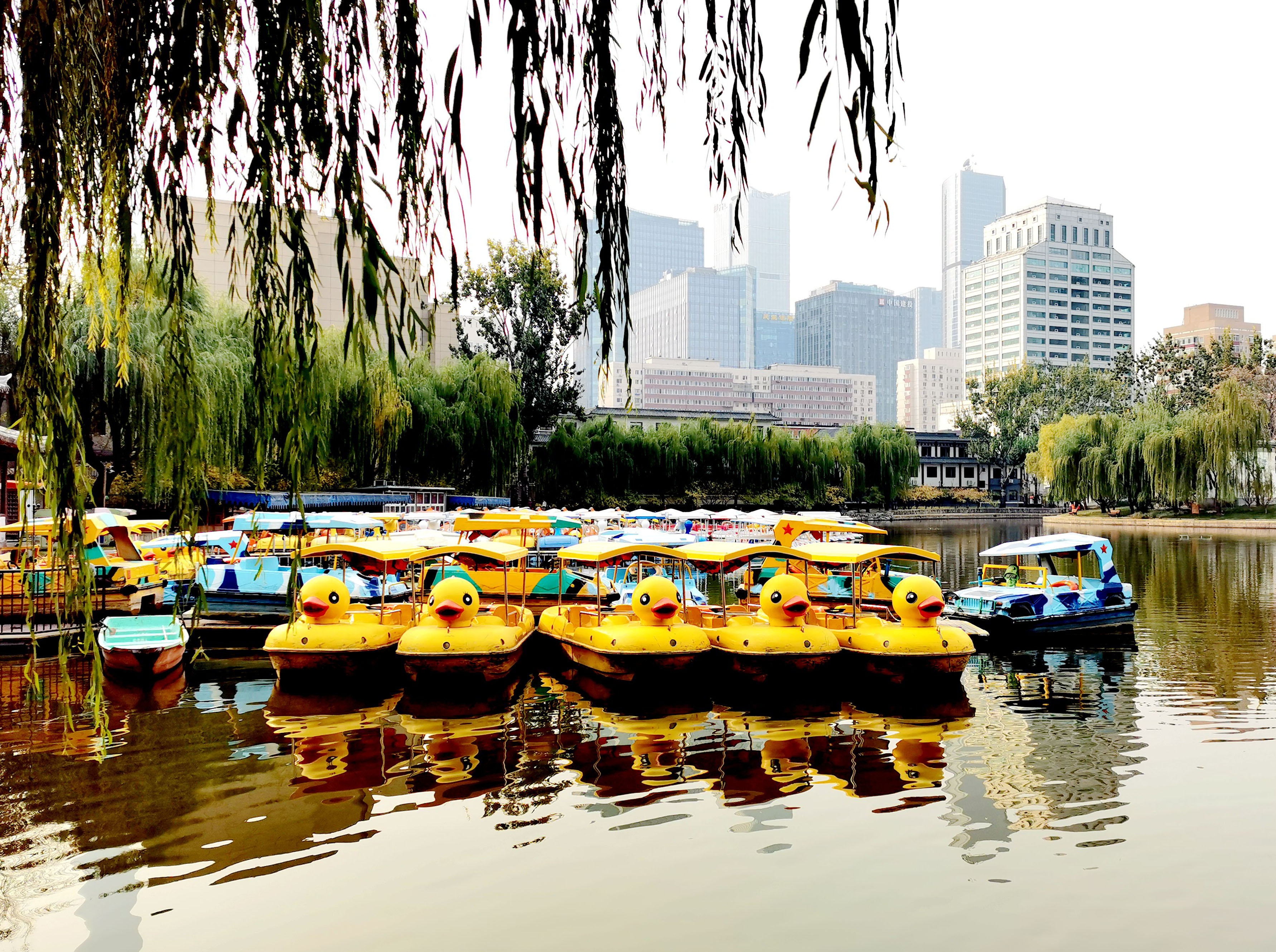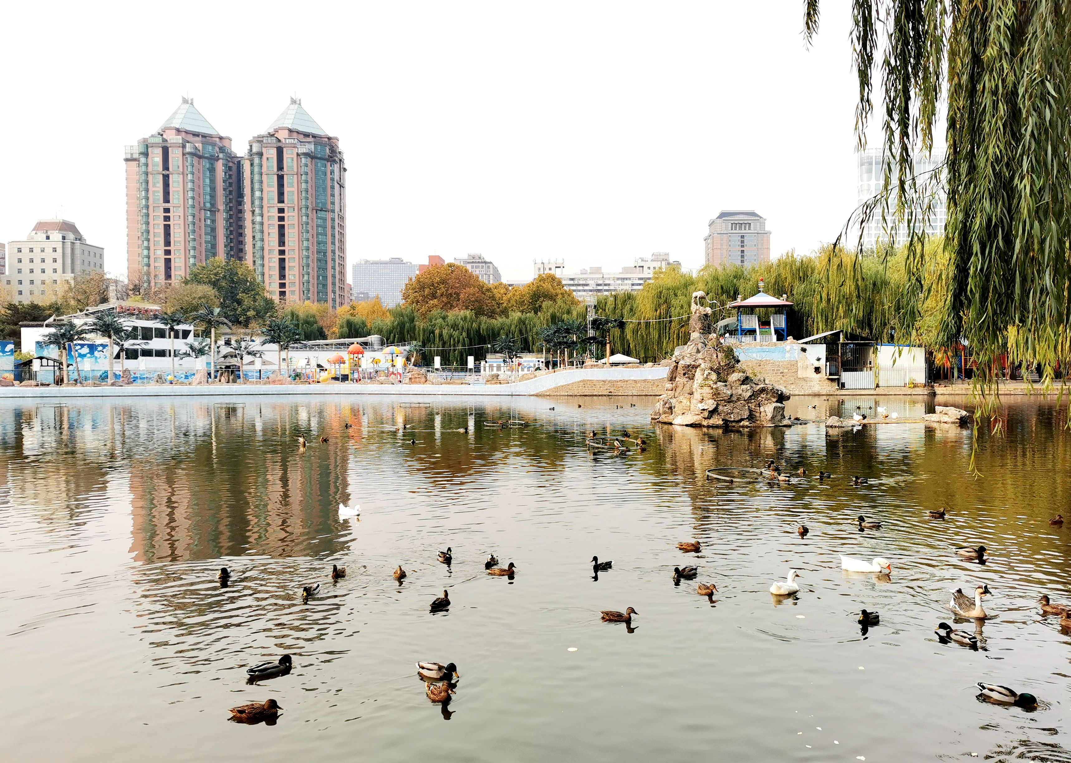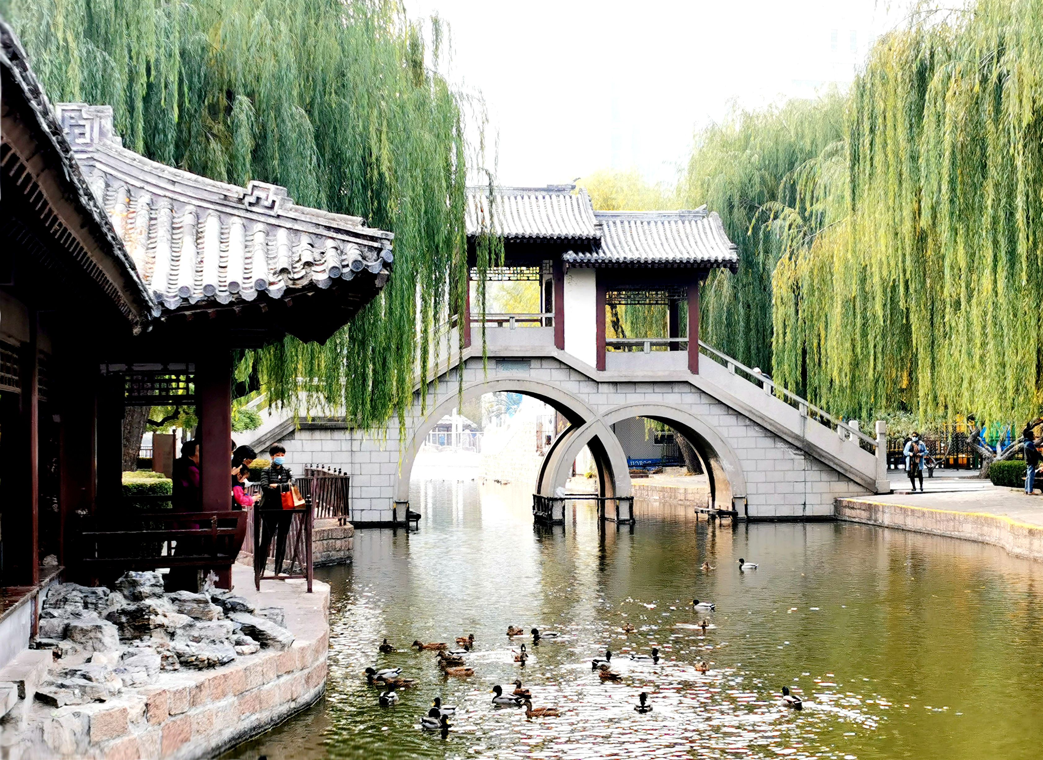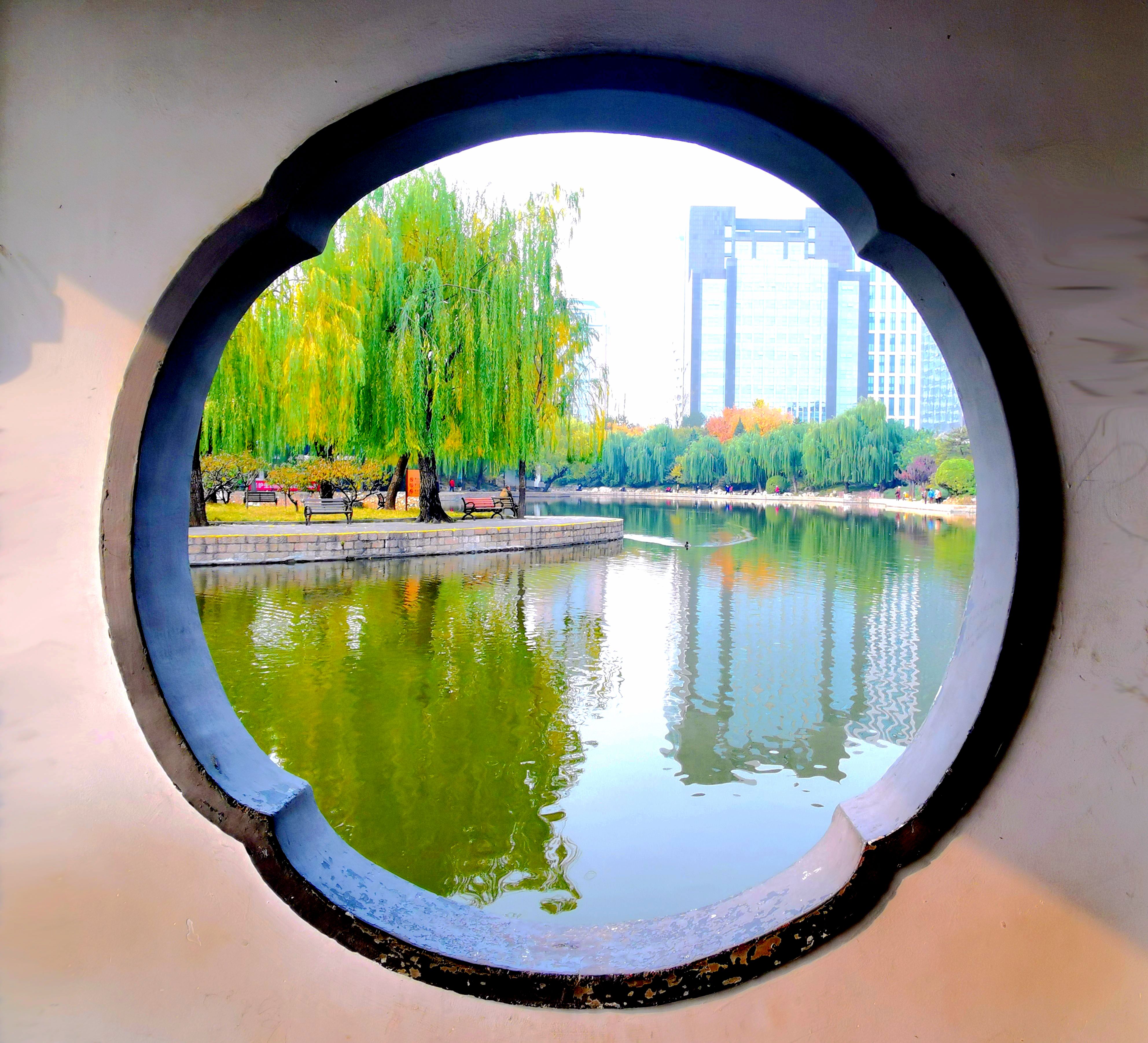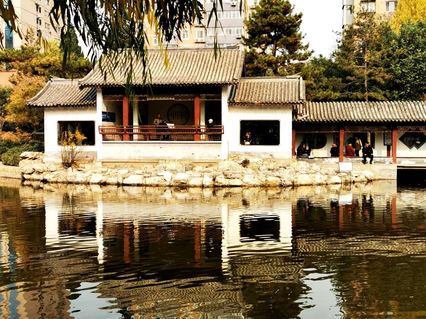 團結湖公園,採用江南民居風格,其中亭臺榭閣等建築均為灰瓦頂白粉墻,楠木色門窗,獨具淡雅樸素特色,是居民休憩活動的幽靜場所。