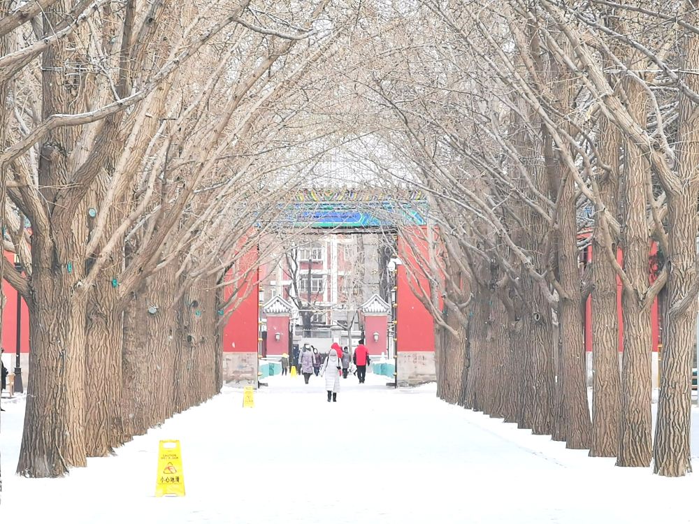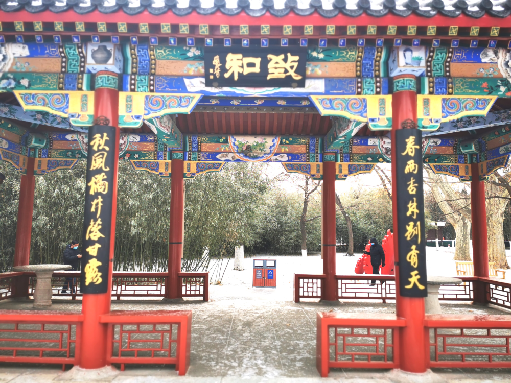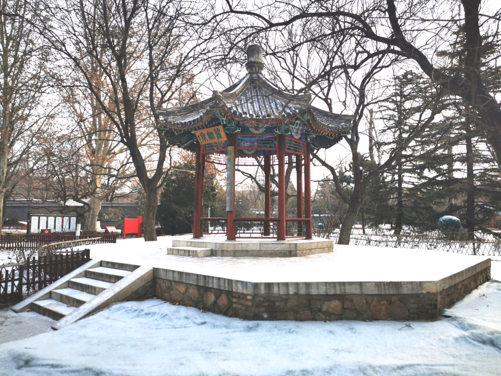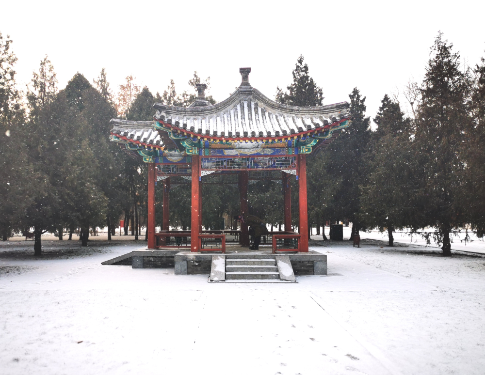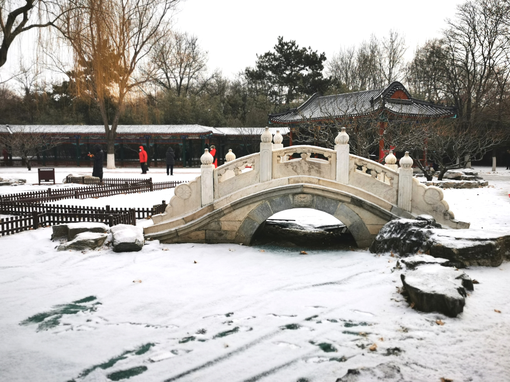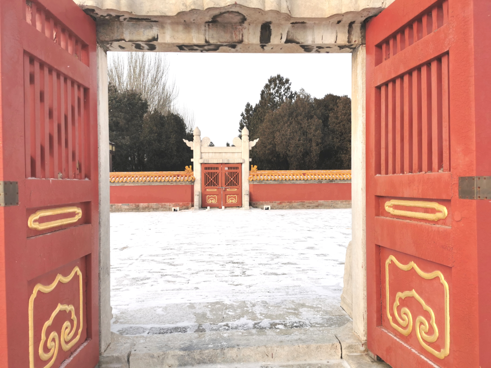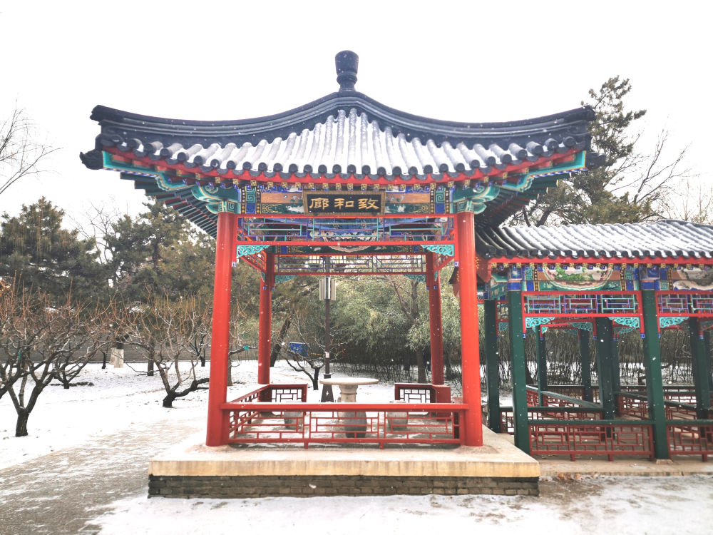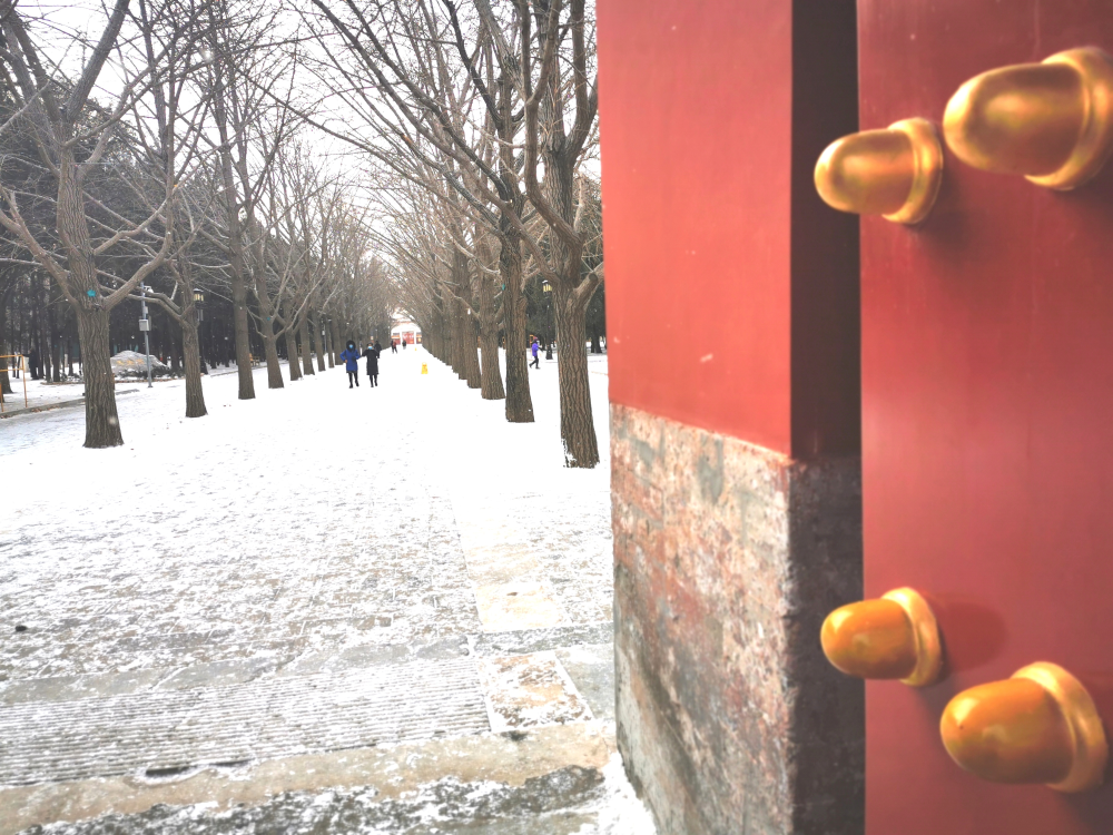北京迎來2021年第一場雪,地壇公園紅墻白雪如換新顏。