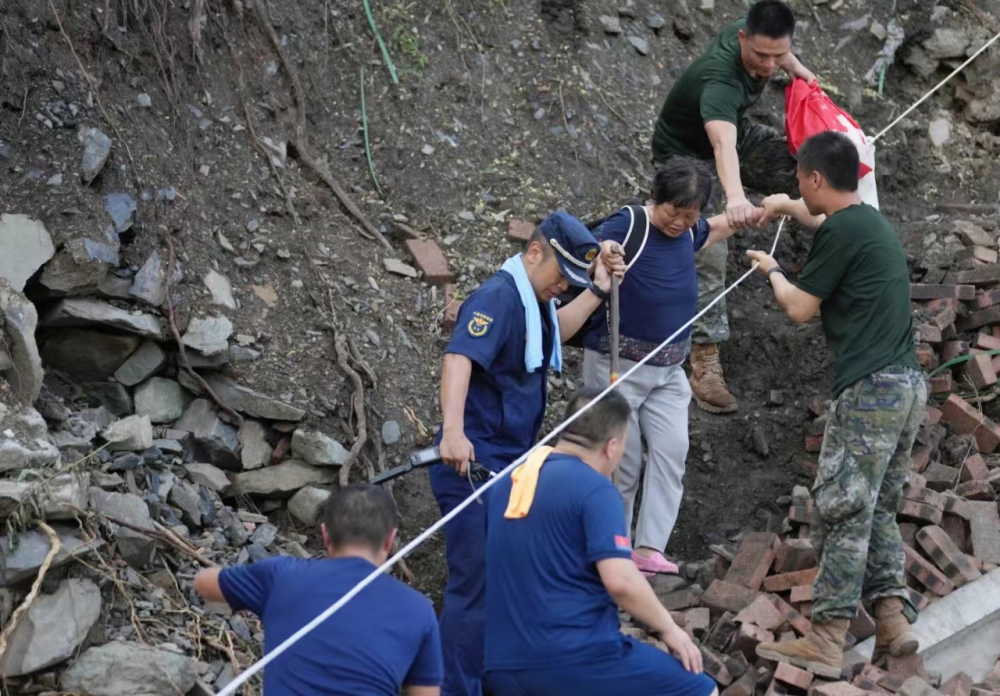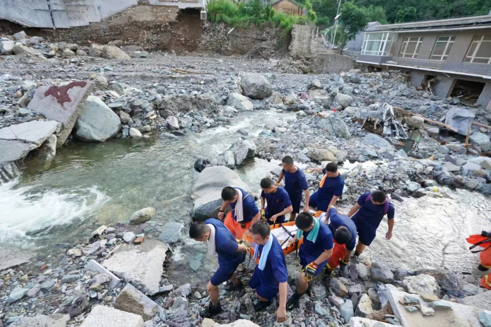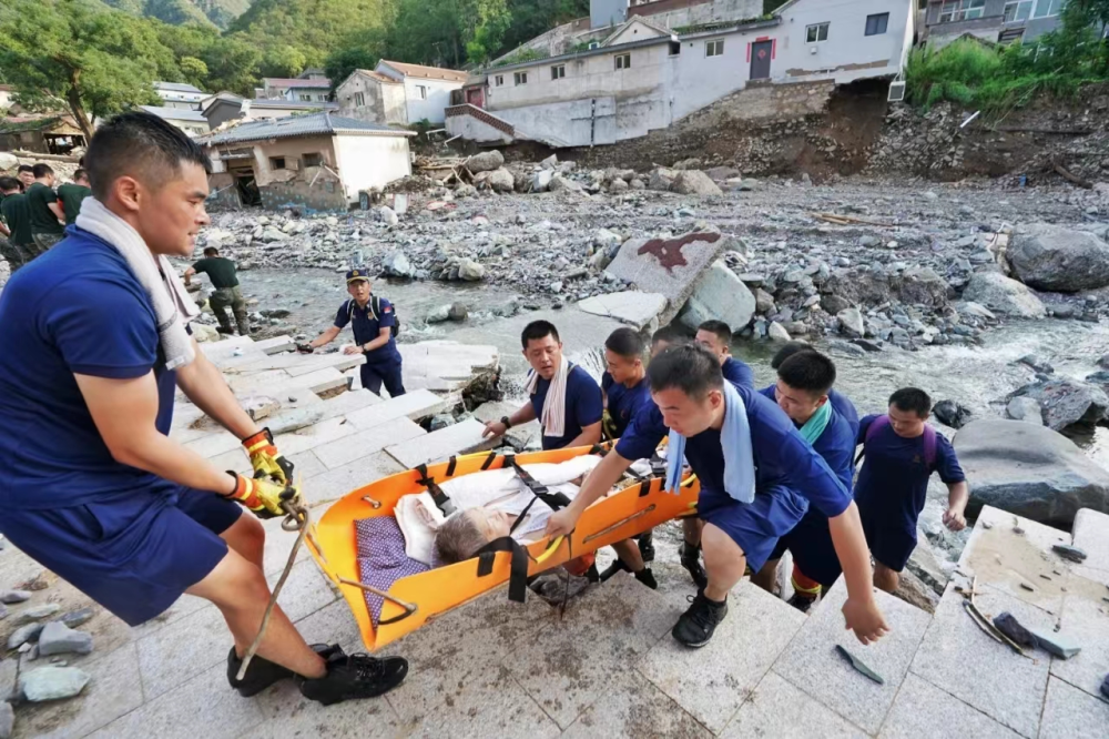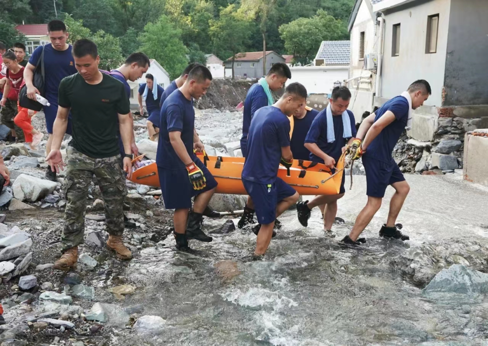 西城消防支隊在房山災區和門頭溝災區,救人搶險。