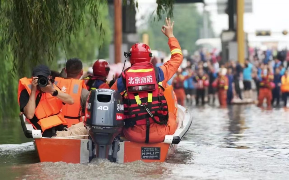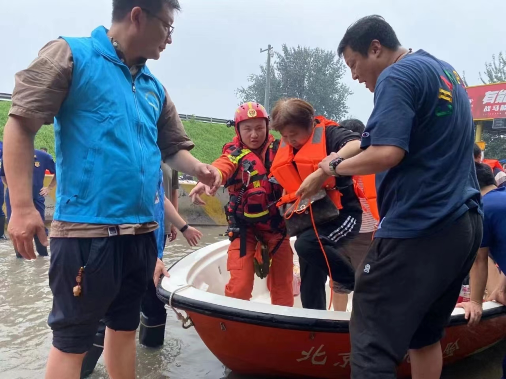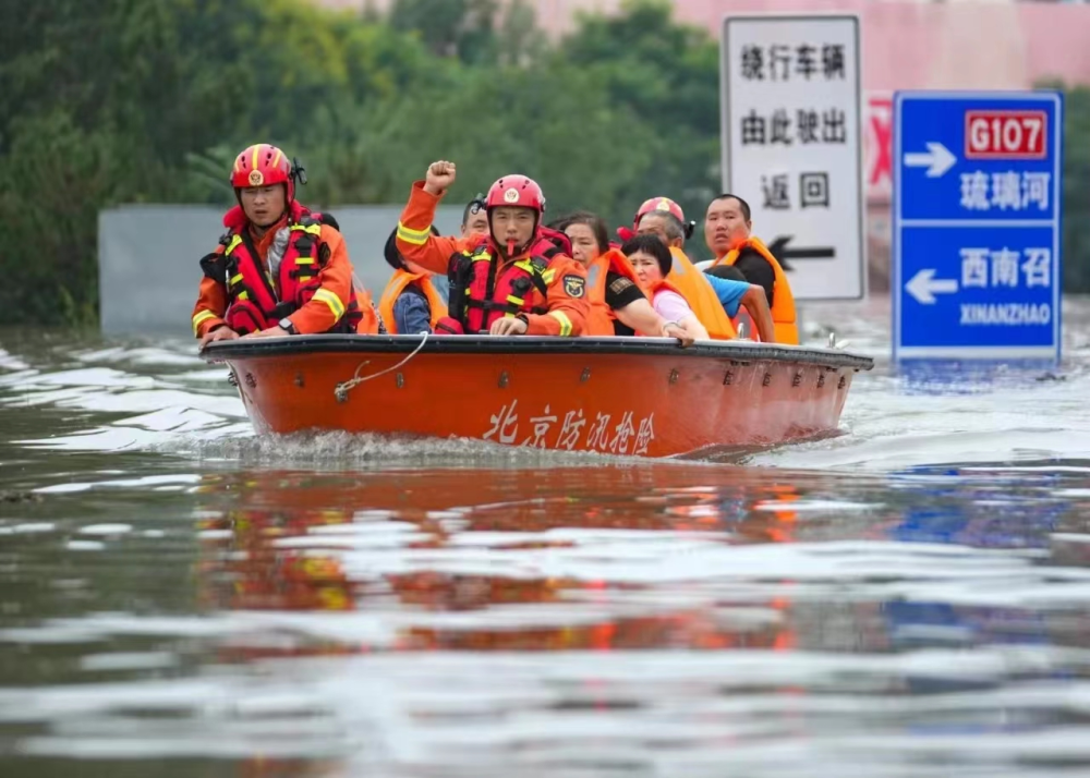 西城消防支隊在房山災區和門頭溝災區,救人搶險。(圖片來源:西城區消防支隊)