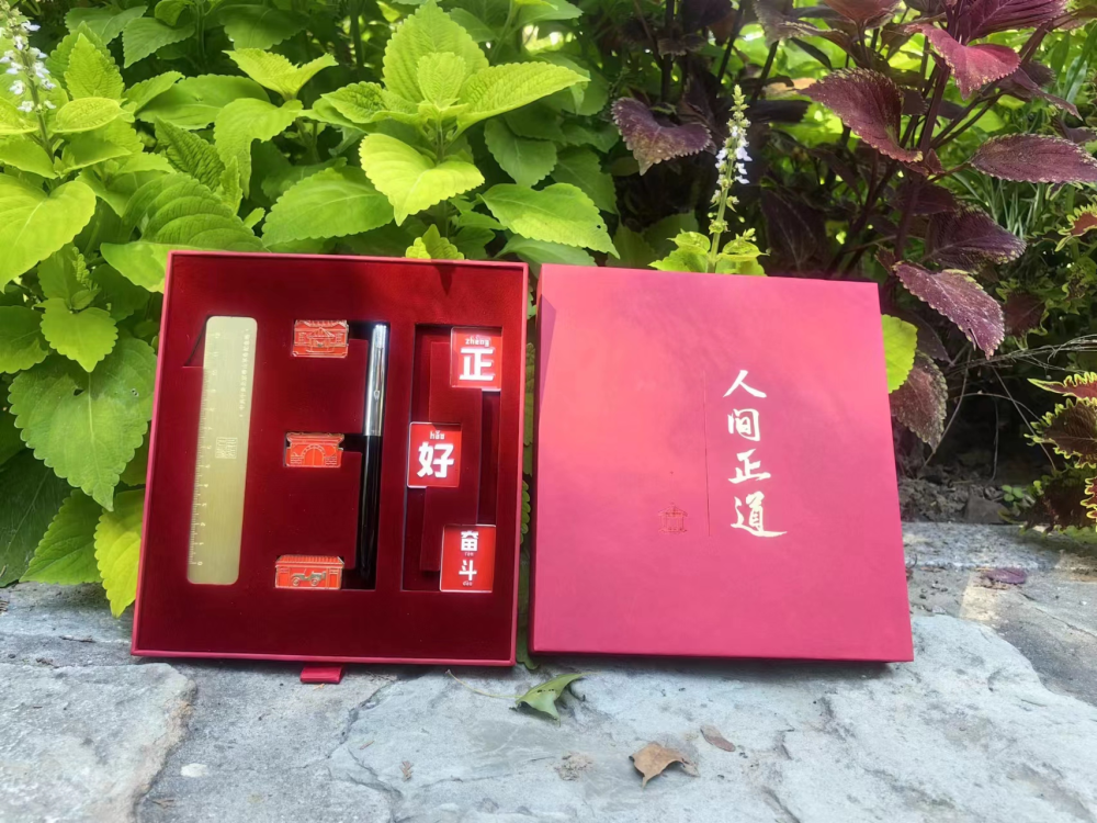 香山公園。“人間正道”禮盒設計靈感源於毛主席在雙清別墅辦公居住期間寫下的詩作《七律•人民解放軍佔領南京》,禮盒內造型為“130”樣式,以紀念毛主席誕辰130周年。