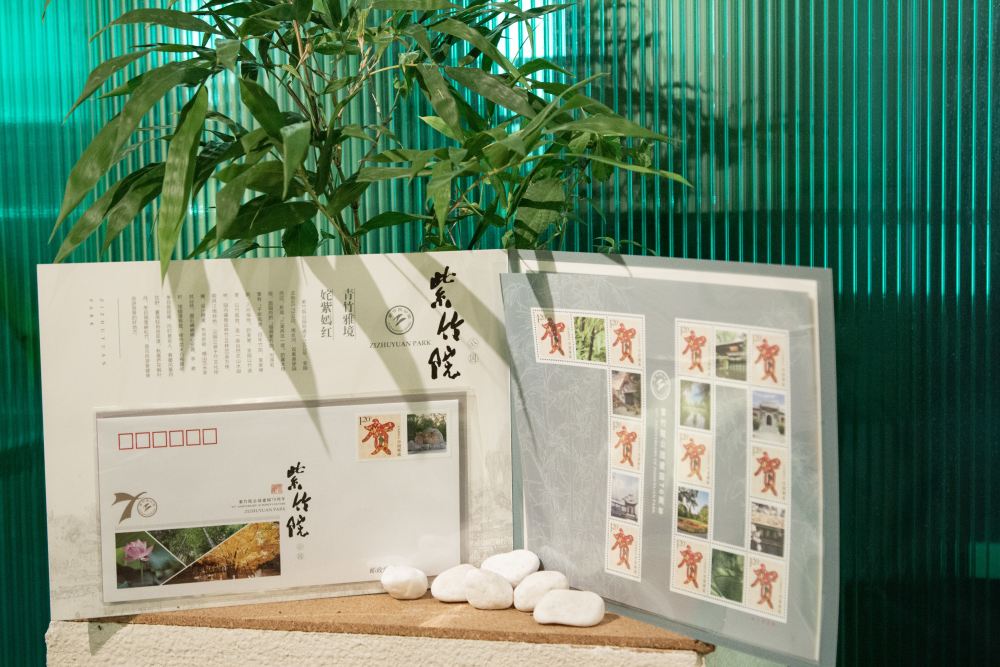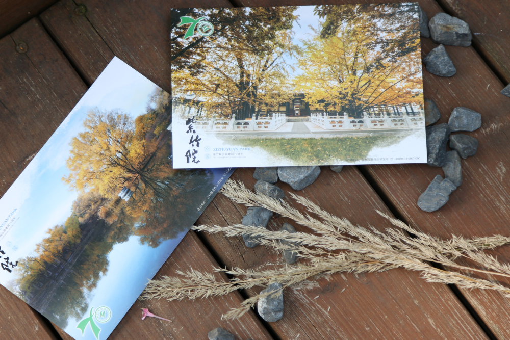 紫竹院公園。值此建園70周年之際,紫竹院公園隆重推出70周年限定郵折及明信片。