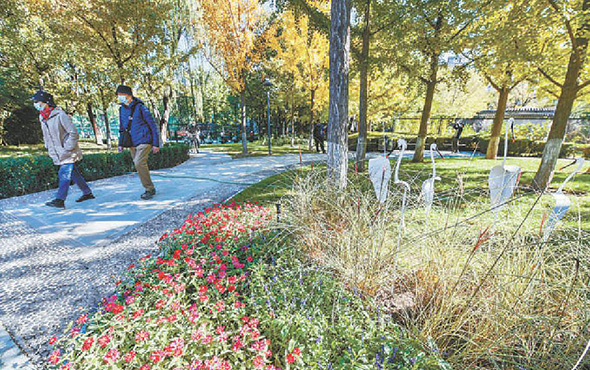 10月22日,市民在改造後的地壇園外園散步休閒。(鄧偉攝)