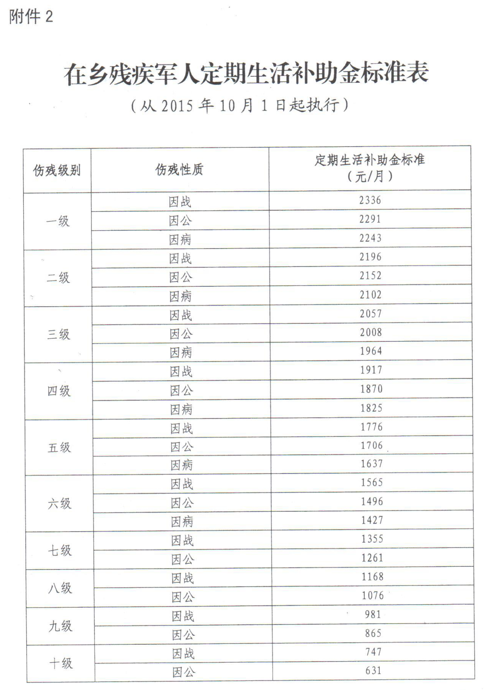 - 附件2:在鄉殘疾軍人定期生活補助金標準表