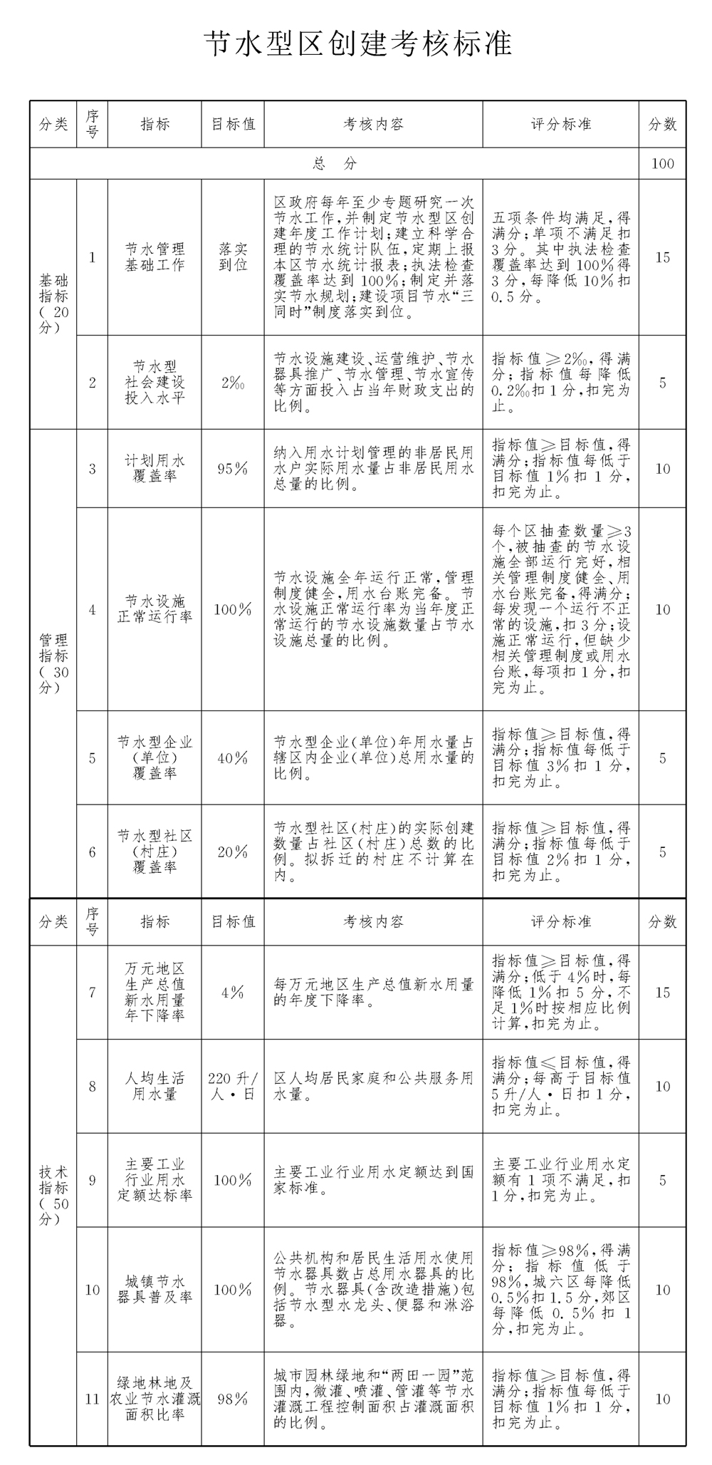 (二)各區政府按照節水型區創建考核標準進行自評,自評總分達到90分以上(含90分)的可提出創建申請。