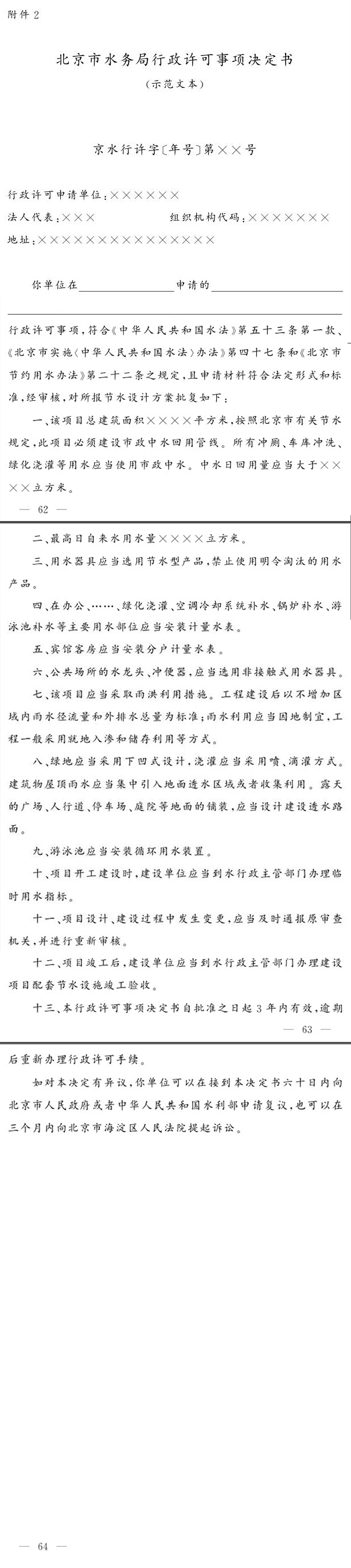 附件2:建設項目節水設施方案審查行政許可事項決定書樣式(示範文本)