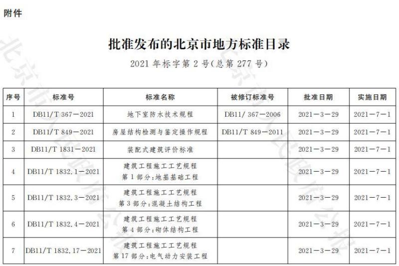 附件:批准發佈的北京市地方標準目錄2021年標字第2號(總第277號)