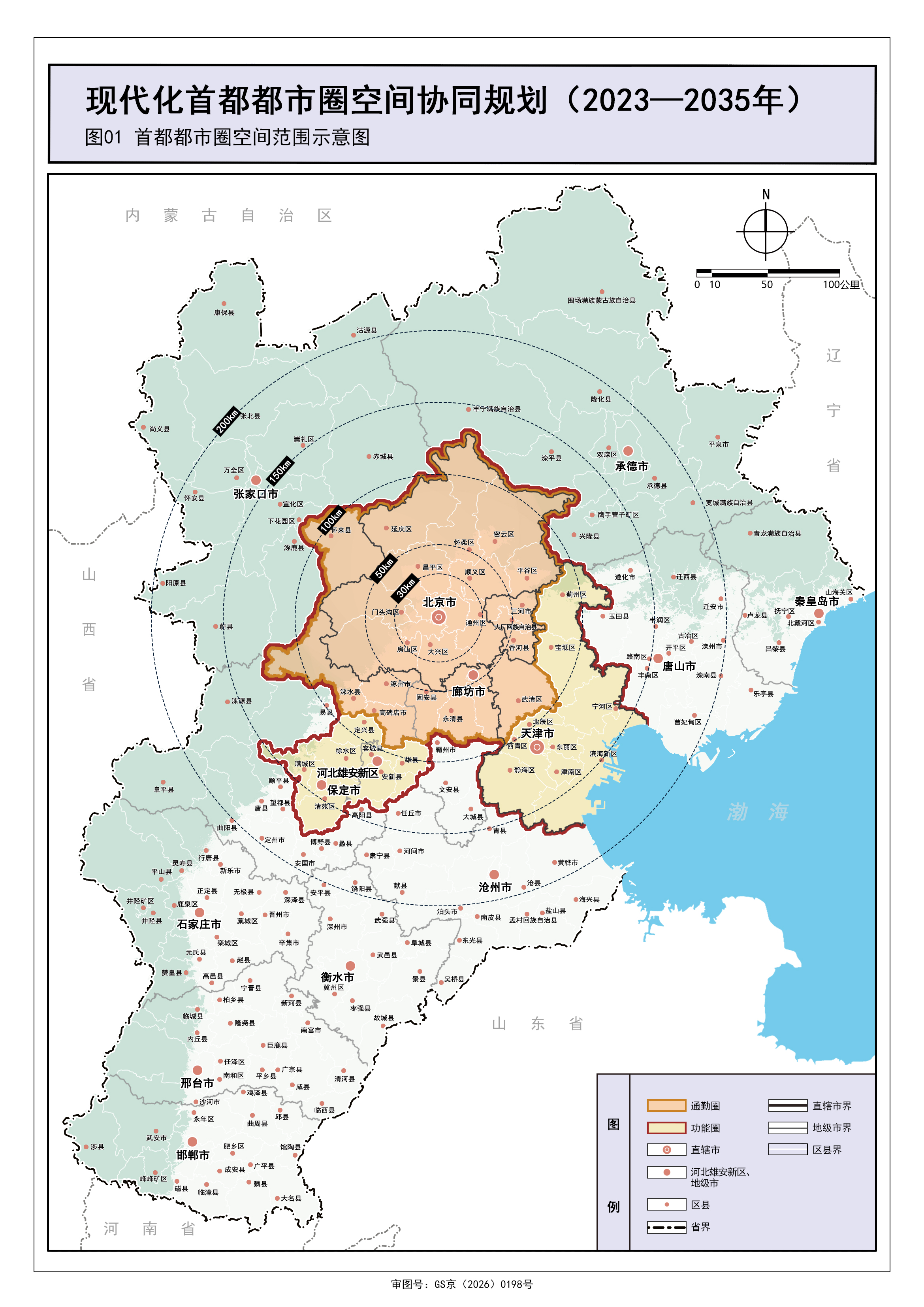 6.多圈:推动形成清晰合理、空间嵌套的多圈层结构,梯次布局北京平原新城、北京生态涵养区、通勤圈、功能圈及产业协同圈等多个圈层。