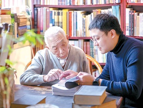 崔勇和老读者商量图书出版事宜。(潘之望 摄)