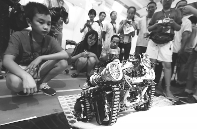 此次决赛,“北京造”机器人入围最多。闯入决赛的北京选手横跨小学、初中、高中三个组别。由中国儿童中心组织的17支参赛队也隶属北京地区,这些小选手带来了“鱼缸清洁助手”等优秀的创意机器人作品。