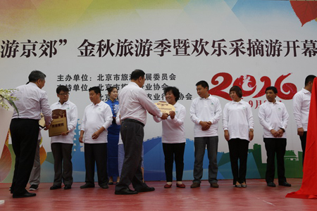 活动现场,北京市旅游委对最新评定的京郊旅游特色业态、等级民俗户颁发了新的标牌。与此同时,京郊各区的采摘园现场带来金秋最丰盛、最实用的采摘旅游线路及产品,并推出了100家采摘园,以及“采摘护照”和“采摘尝鲜一卡通”互动活动,为市民带来最实用、最优惠、最便捷的休闲采摘旅游体验。
