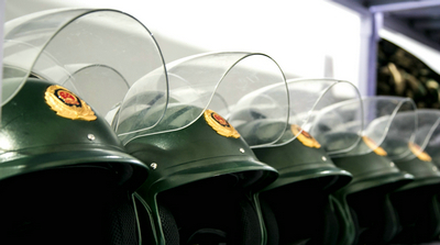 在北京西站武警指挥中心内,武警官兵正在整理装备。