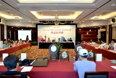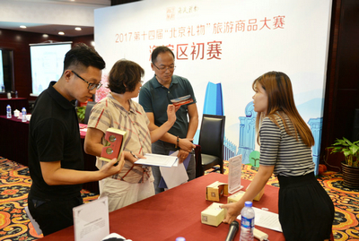 8月23日下午,由海淀区旅游委组织举办的2017第十四届“北京礼物”旅游商品大赛海淀区初赛在如火荼毒的进行着。来自海淀区的15家企业,110余件作品参加角逐。现场气氛紧张热烈,参赛企业和个人对自己作品的设计思想、设计目的、使用方法等进行陈述,专家们逐一进行点评,并认真分析,提出改进建议。部分优秀商品将在北京国际旅游商品及旅游装备博览会上集中展示。