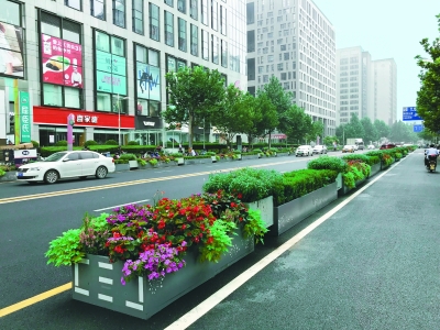 8月2日,记者沿丹棱街进入中关村西区,以前道路上密布的隔离护栏全不见了,取而代之的是鲜花盛开的花钵,显得道路又开阔又美观。