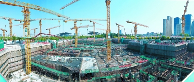 昨天,在北京冬奥村人才公租房项目工地,工人们正在紧张施工中。该项目将于7月底跃出地面,今年底实现结构封顶,2020年底基本完工。本报记者 饶强摄