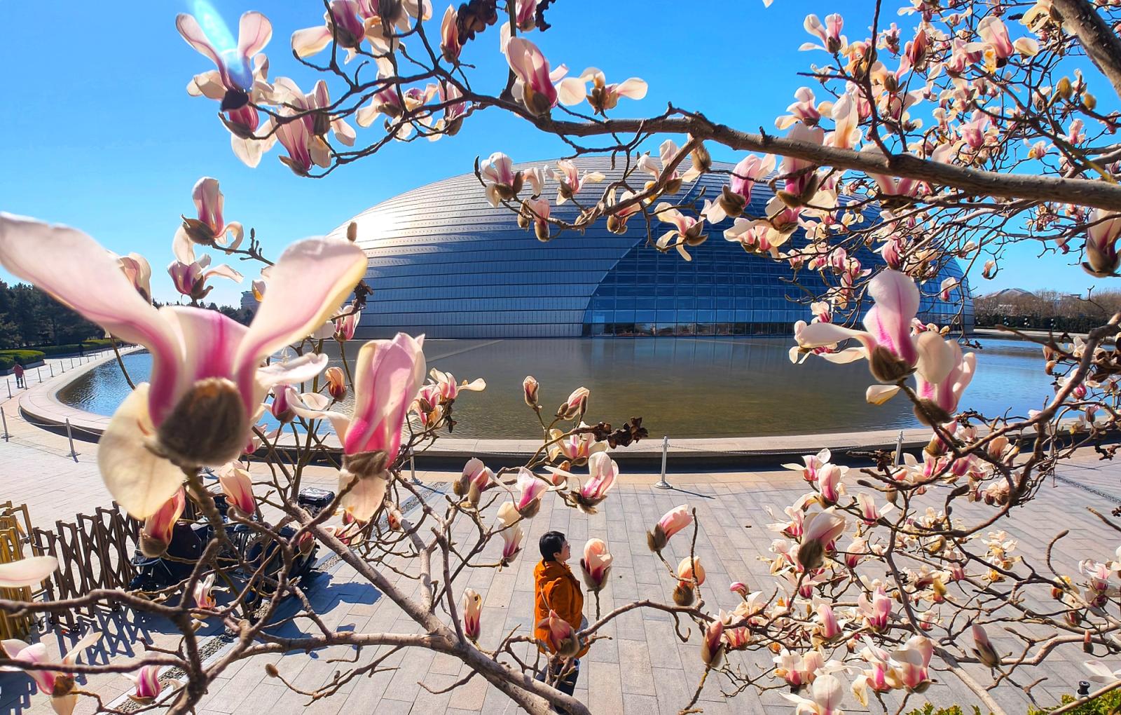 随着气温回升,国家大剧院望春玉兰迎来盛花期。