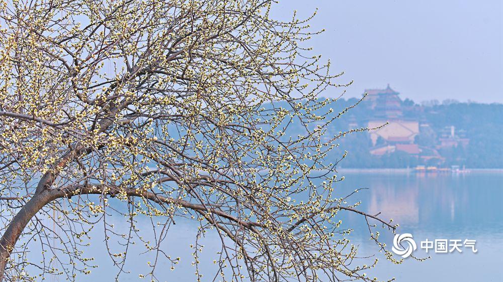 3月12日,北京颐和园西堤,春桃含苞,不禁让人期待花开满枝的美丽景象。