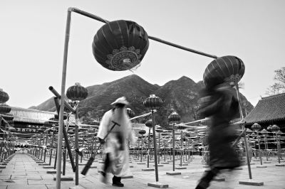 操持灯阵的杨德林杨老,远远地向记者挥了挥手。他是门头沟民俗协会的主席,也是灵水隔壁村桑峪村的老人儿,打从春节前,就帮着村里筹备这次活动。