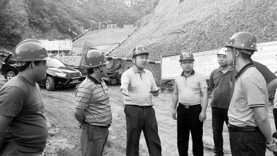 崔旭龙(左二)到延崇高速施工现场了解工程进展情况。