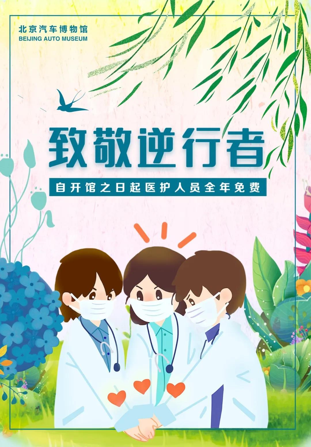 为了致敬在此次抗击疫情中,奋勇战斗的医护工作者, 北京汽车博物馆将面向医护人员实行免费开放。具体公告如下: